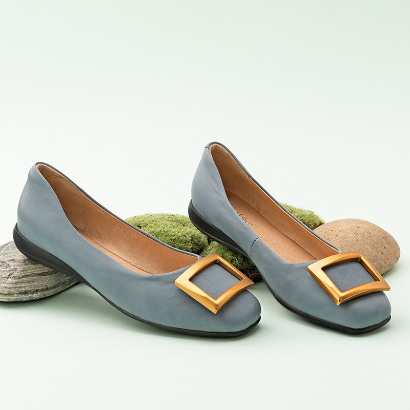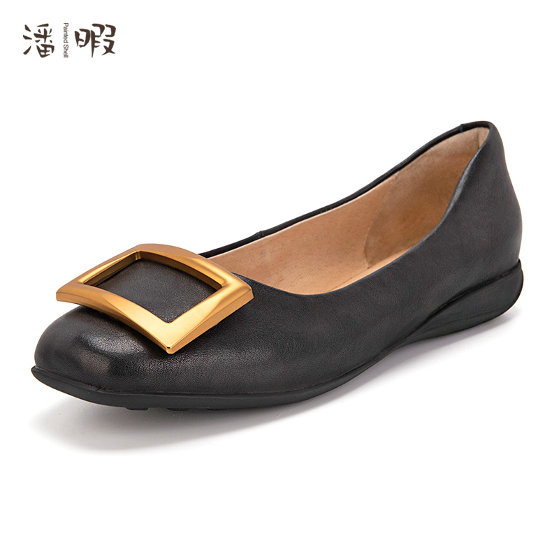 平底单鞋女方头真皮浅口法式百搭软皮软底潘暇脚胖大码女鞋41—43