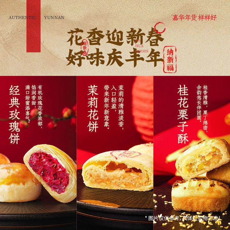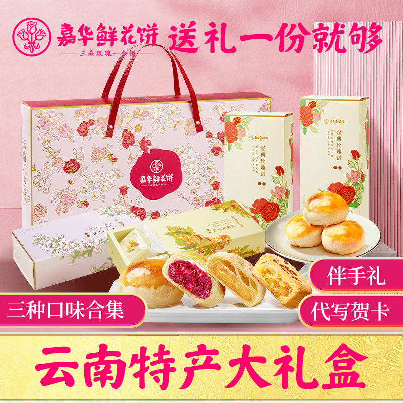 嘉华鲜花饼零食大礼包云南特产玫瑰花饼传统糕点心春节年货送礼盒