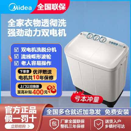 美的8/12公斤kg大容量半自动家用租房双桶双缸波轮老人洗衣机