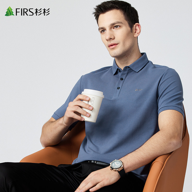 杉杉男装翻领短袖T恤男2025夏季新款中年商务休闲撞色刺绣POLO衫