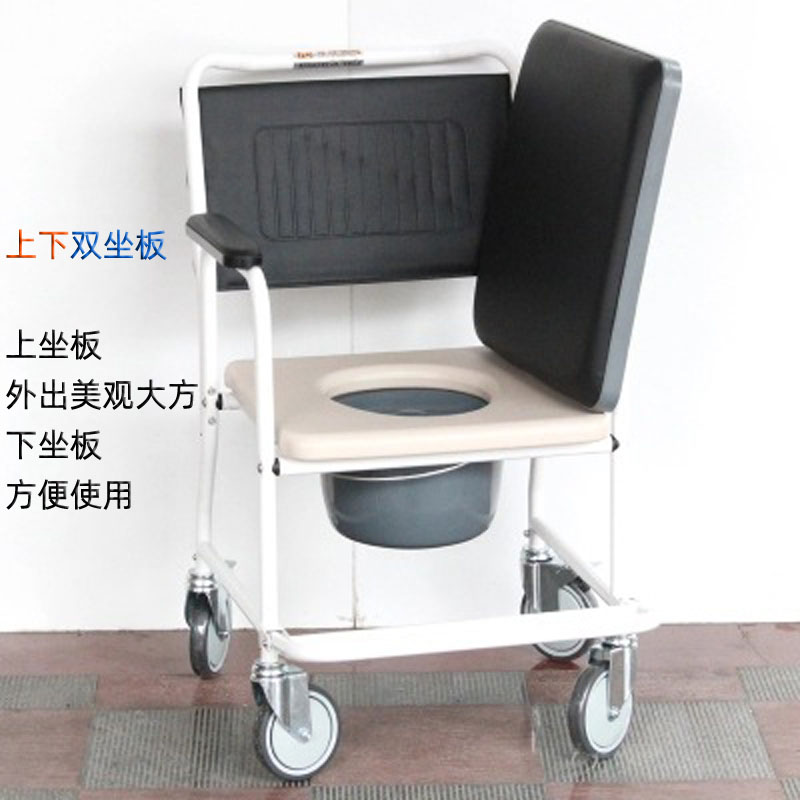 带轮坐便椅老人洗澡椅老年人坐便器移动马桶孕妇座便器坐厕冲澡车