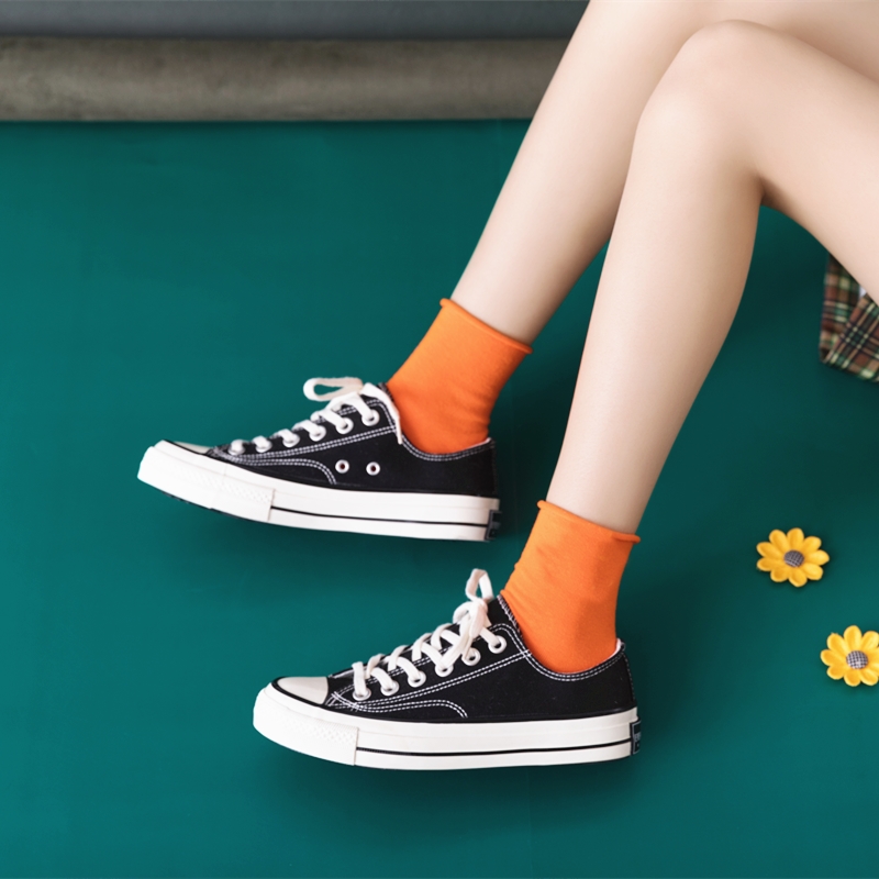 堆堆袜子女夏季薄款中筒袜韩国学院风日系纯棉运动卷边ins潮长袜