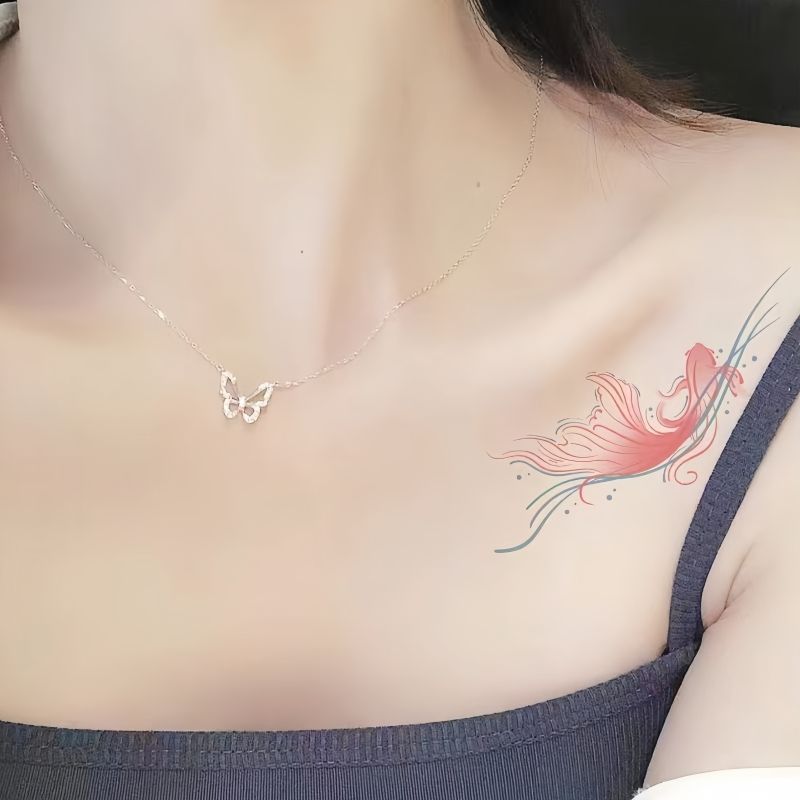 纹身贴防水男女持久仿真文身性感锁骨手腕蓝色锦鲤小鱼贴纸ins风