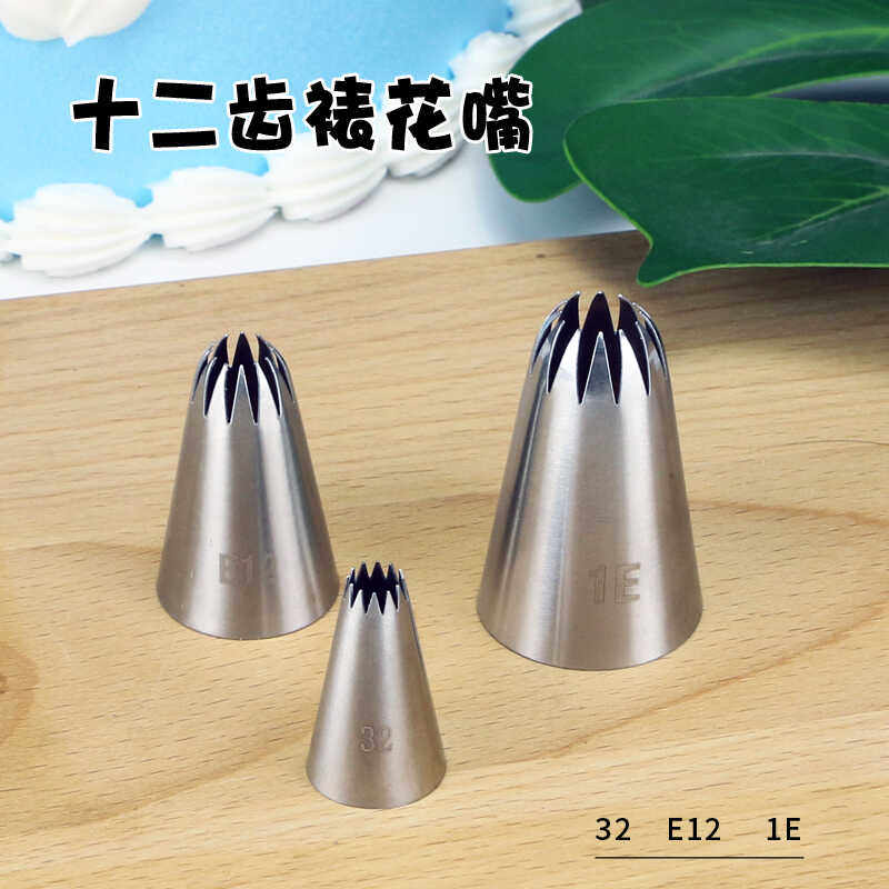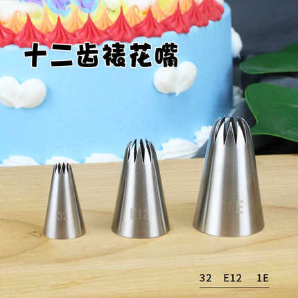 12齿裱花嘴1E十二齿大号纸杯子奶油蛋糕玫瑰花嘴贝壳花围边E12嘴