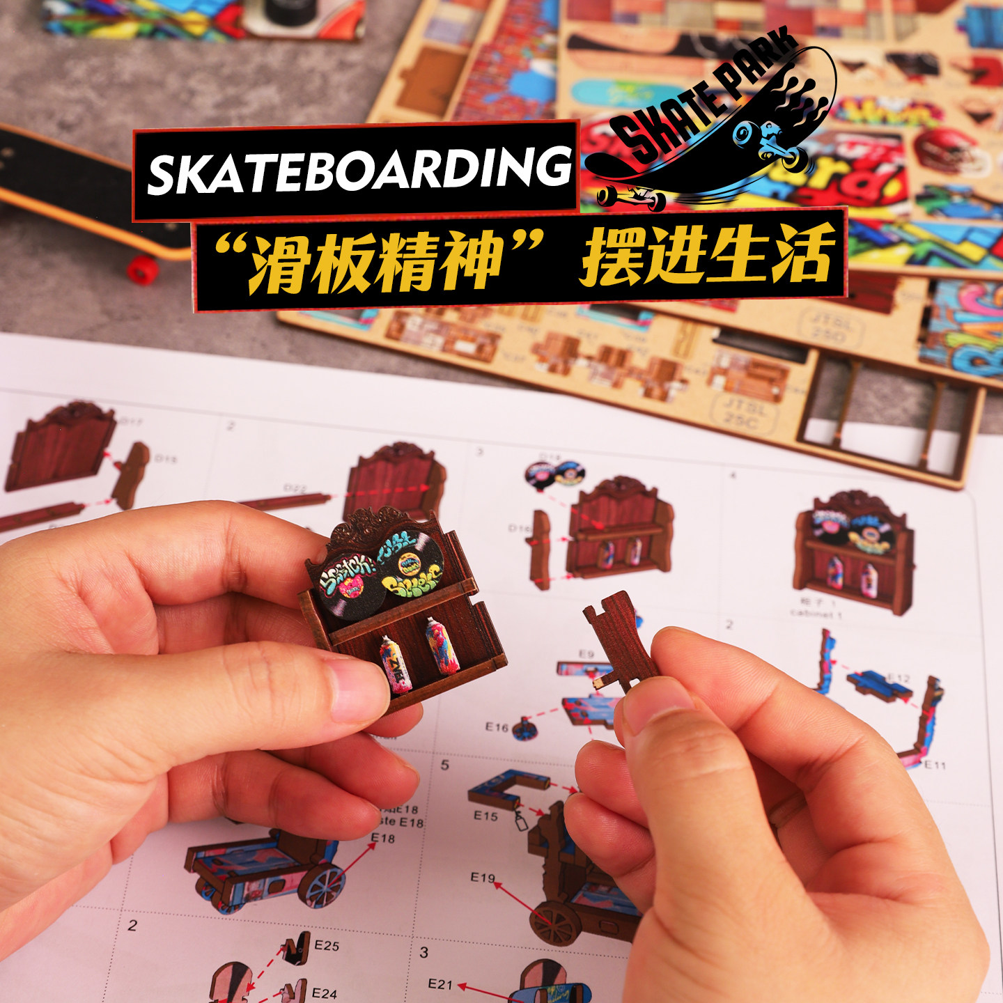 书立diy小屋滑板竞技木质拼装模型手工积木玩具立体拼图生日礼物