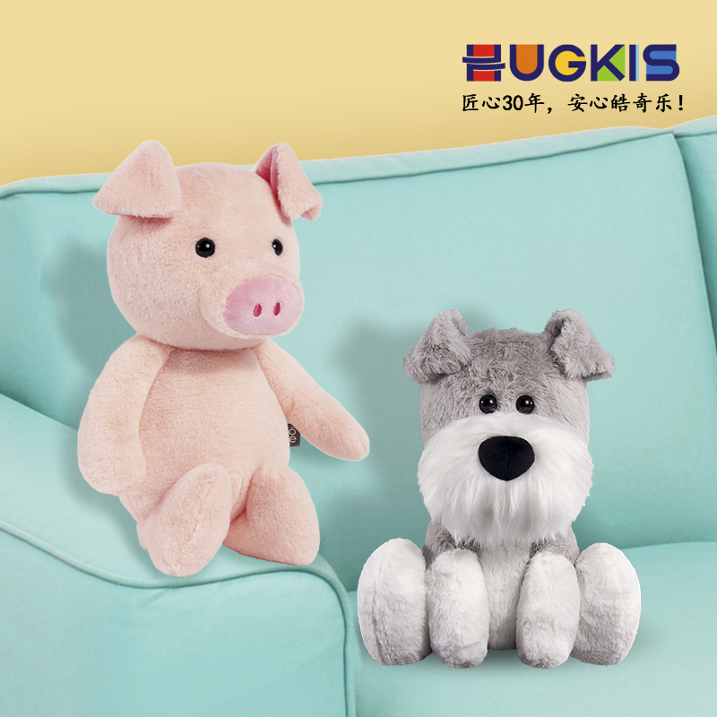 HUGKIS可爱小动物毛绒玩具雪纳瑞狗狗小猪公仔抱枕女生日礼物玩偶
