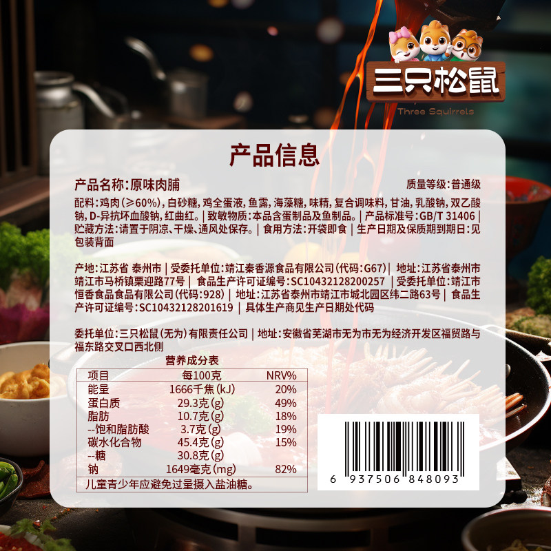 三只松鼠_原味肉脯120片鸡肉猪肉脯高蛋白即食零食小吃特产靖江