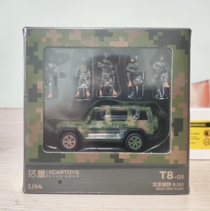 拓意1:64北京吉普越野BJ80合金车模迷彩人偶汽车模型仿真红旗国悦