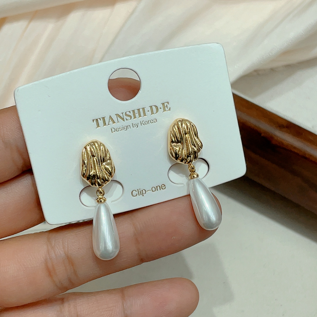 新款复古法式气质珍珠水滴耳环女无耳洞耳夹高级轻奢时尚个性耳钉
