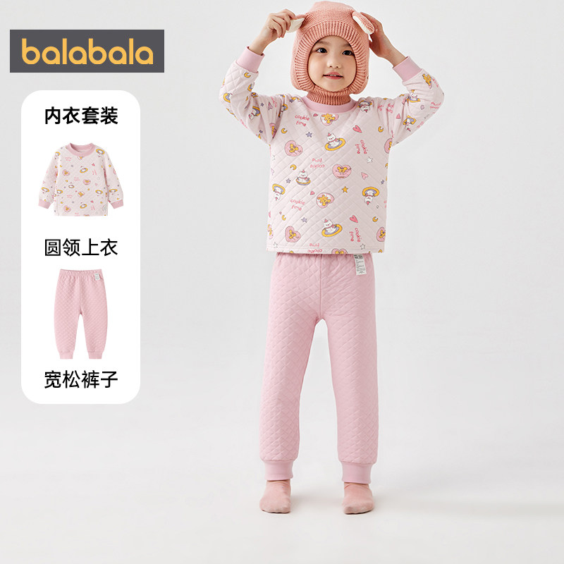 巴拉巴拉儿童内衣套装男童女童夹棉加厚睡衣冬装新款宝宝秋衣秋裤