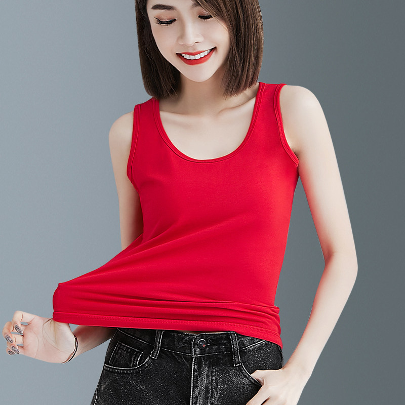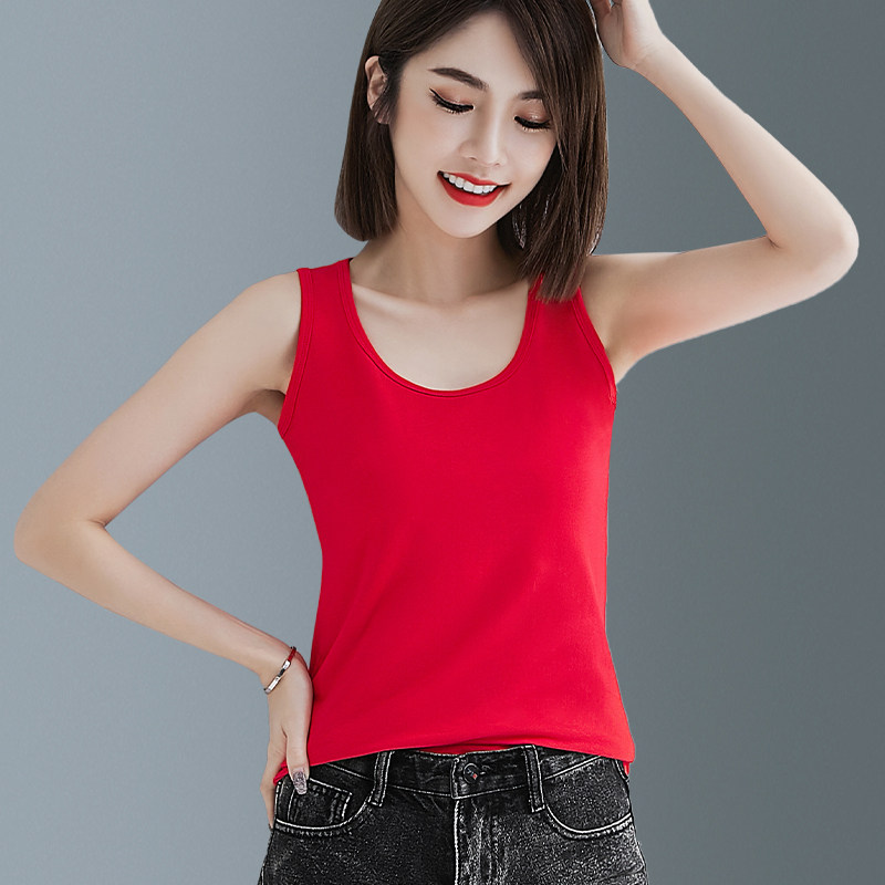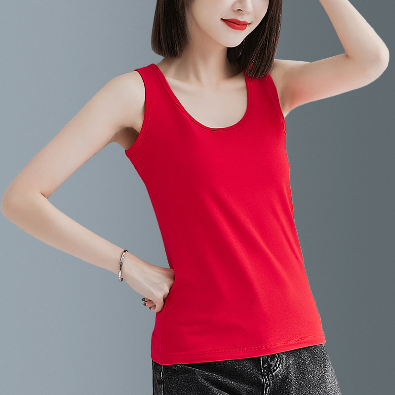 红色修身精梳棉吊带背心女内搭春夏季新款纯色百搭外穿无袖打底衫