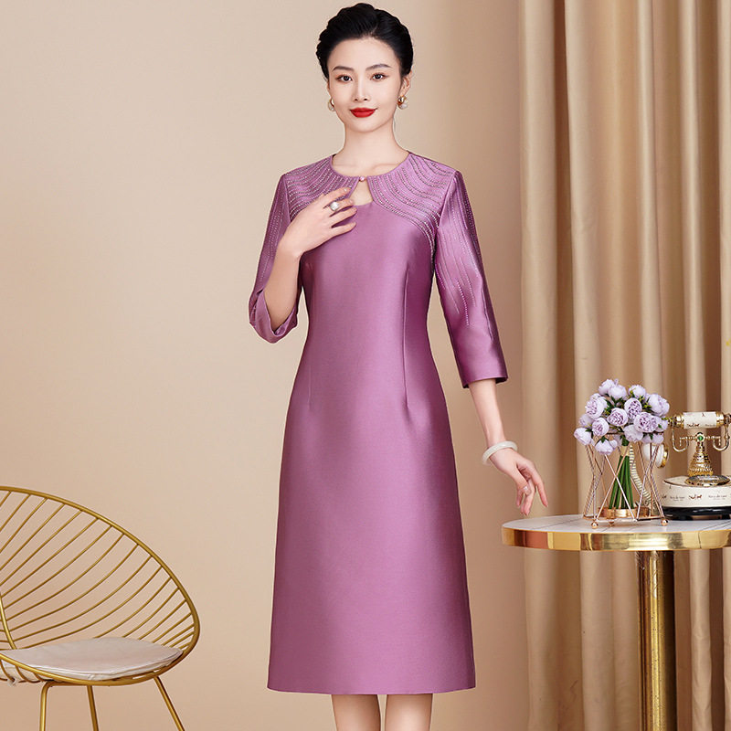 高端喜婆婆婚宴礼服时尚秋装新款中年妈妈装高贵气质中长款连衣裙