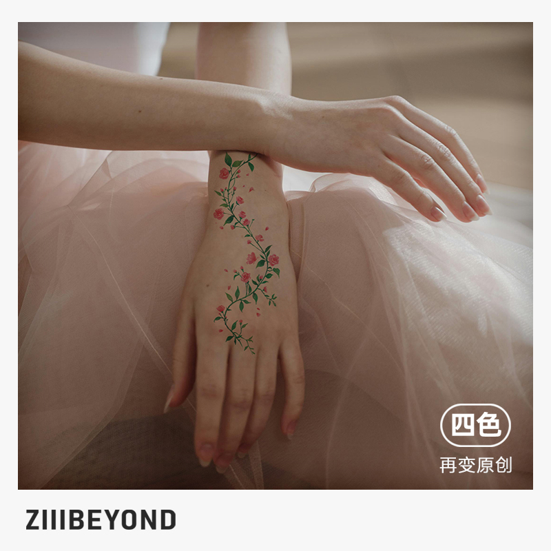 再变 粉藤花香水纹身贴原创彩绘高级感花朵纹身贴纸防水持久女