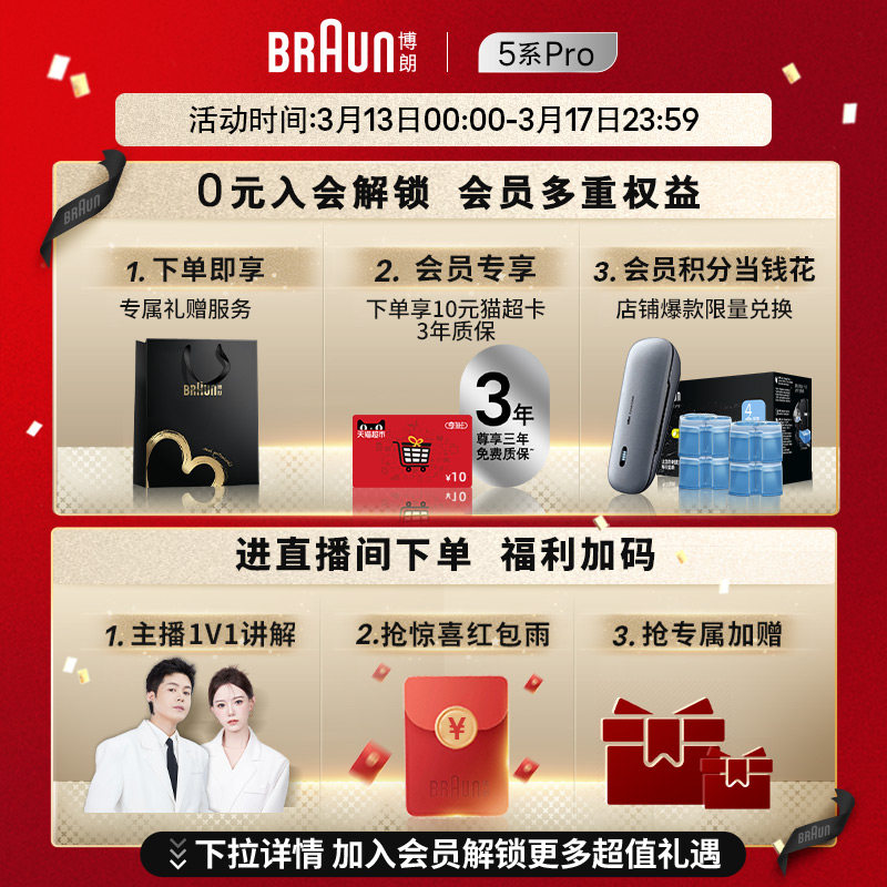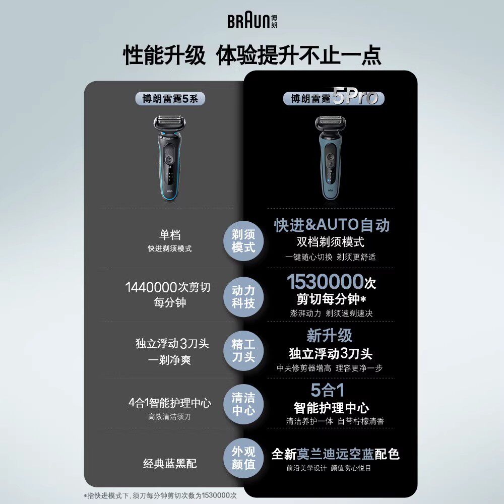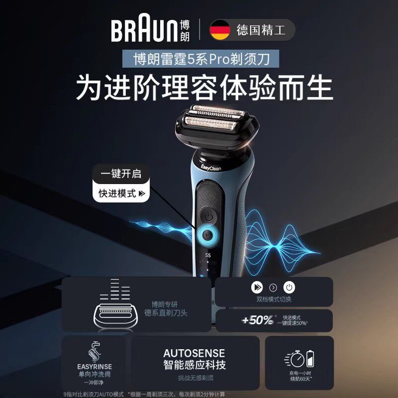 【政府补贴】博朗雷霆5系52-A4000cs往复式快充电动剃须刀礼物