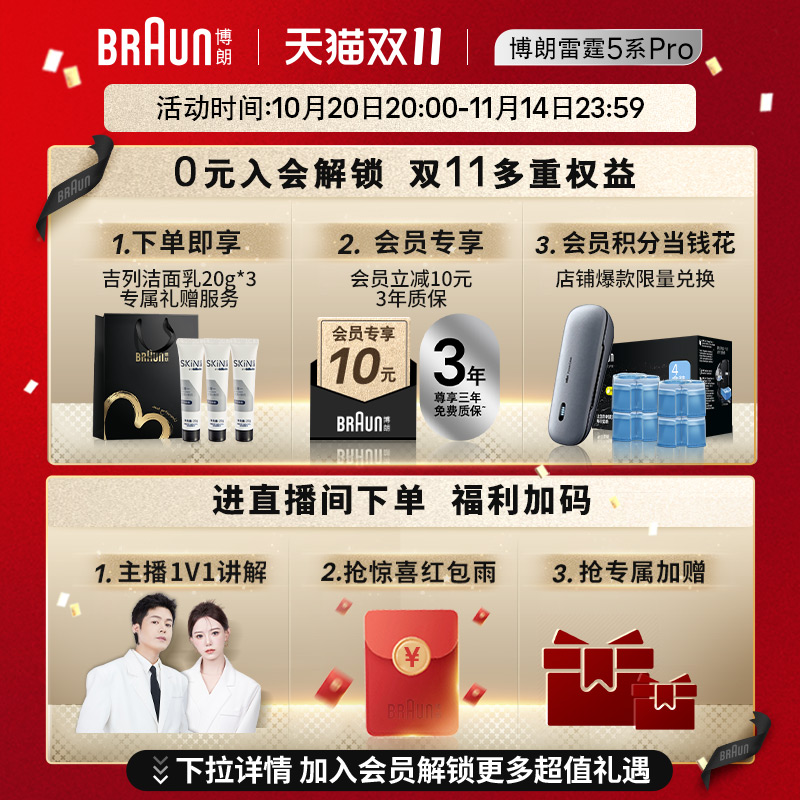 【双11现货开抢】博朗雷霆5系pro-A4000cs往复式电动剃须刀送礼