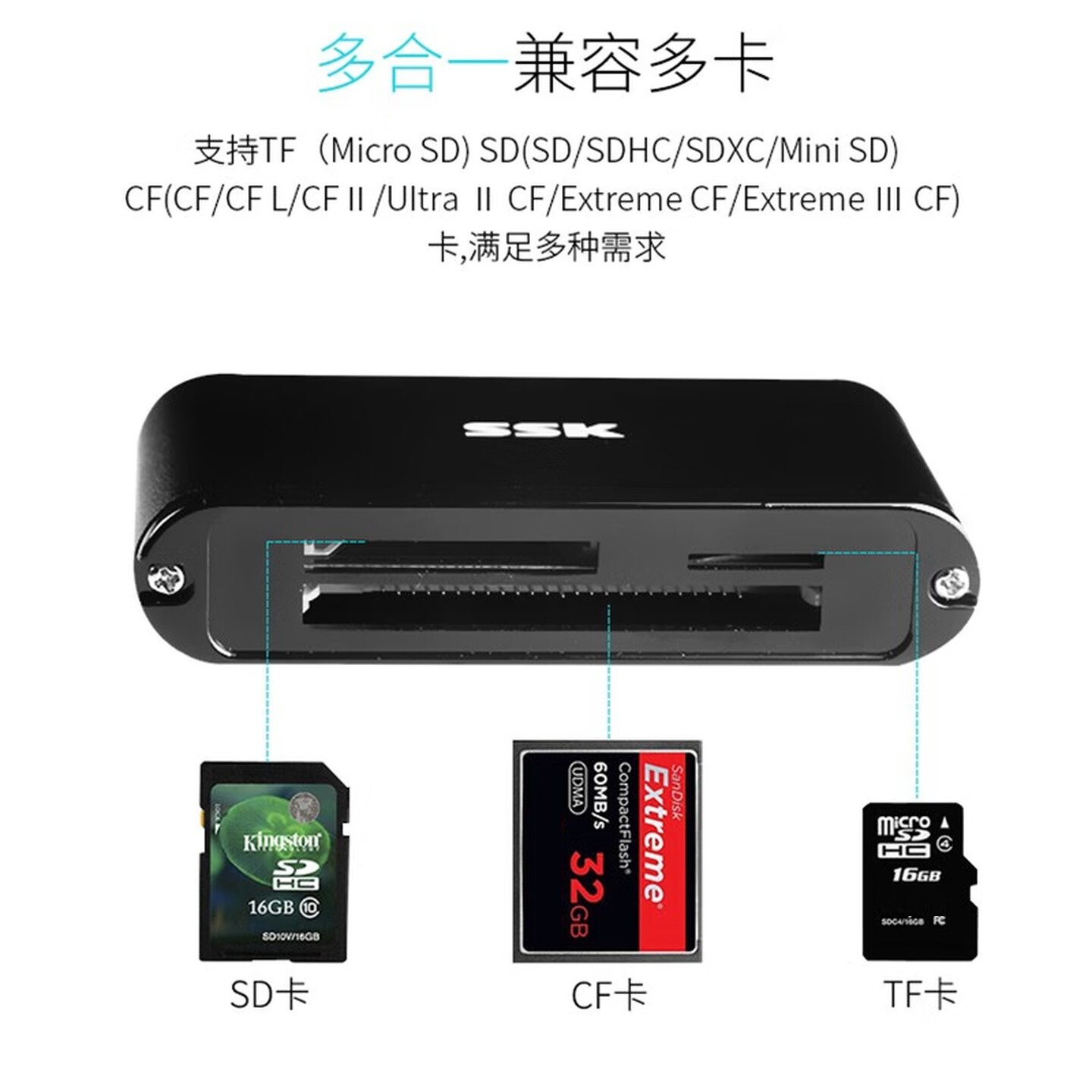 SSK飚王 SCRM630 USB3.0高速多合一多功能TF/SD/CF金属迷你读卡器