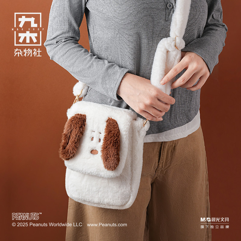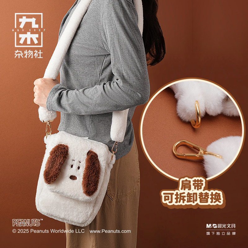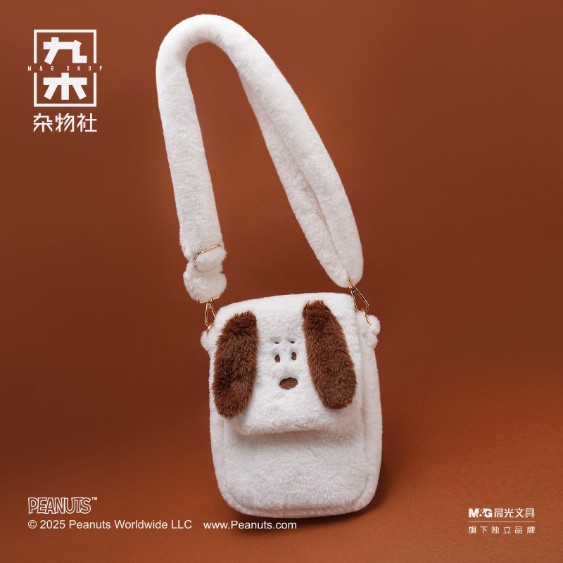 九木杂物社史努比手机包斜跨单肩包便携秋冬出行毛绒小包女生礼物