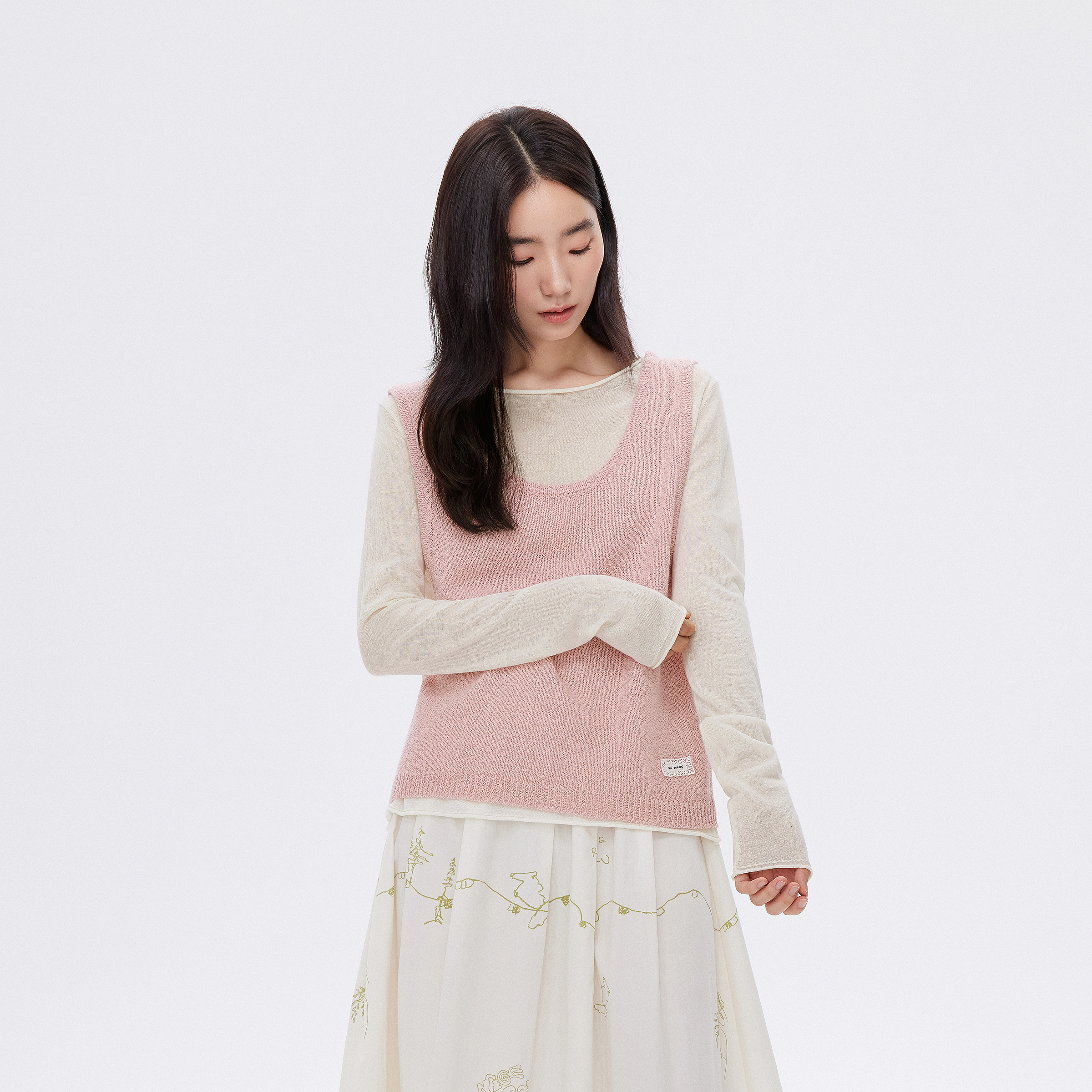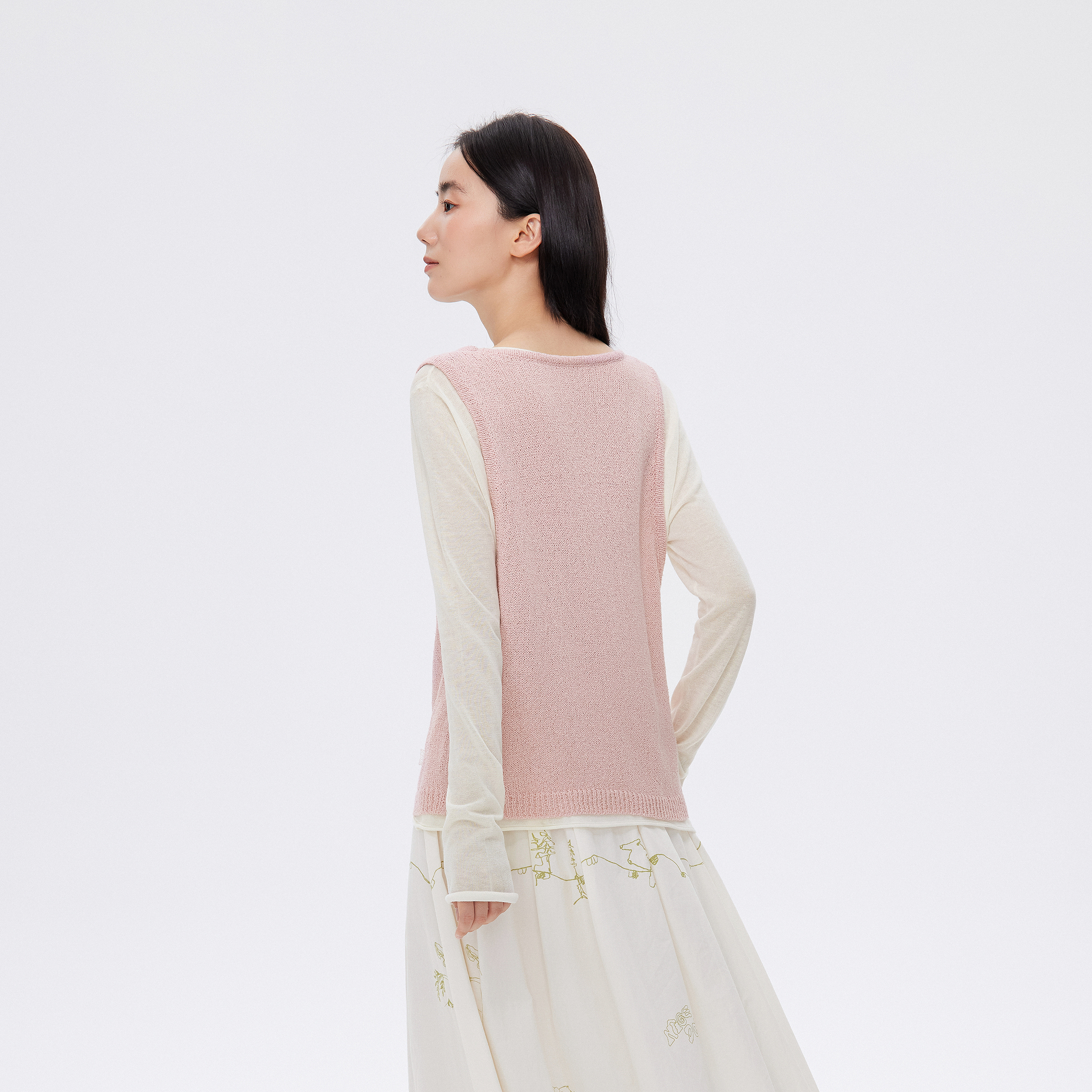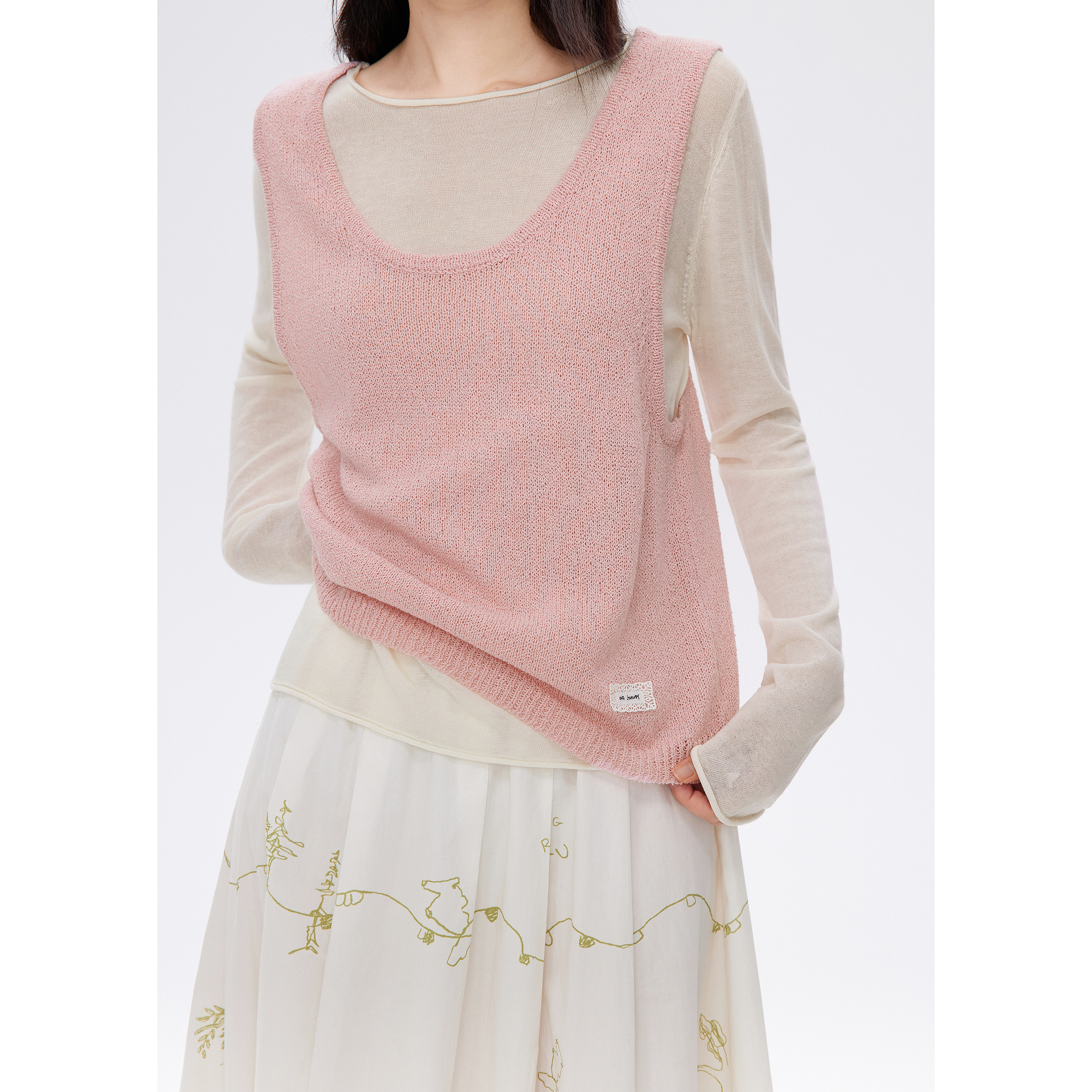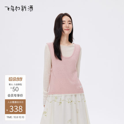 飞鸟和新酒2025秋季新款设计感时尚粉色假两件套亚麻毛衣针织衫女