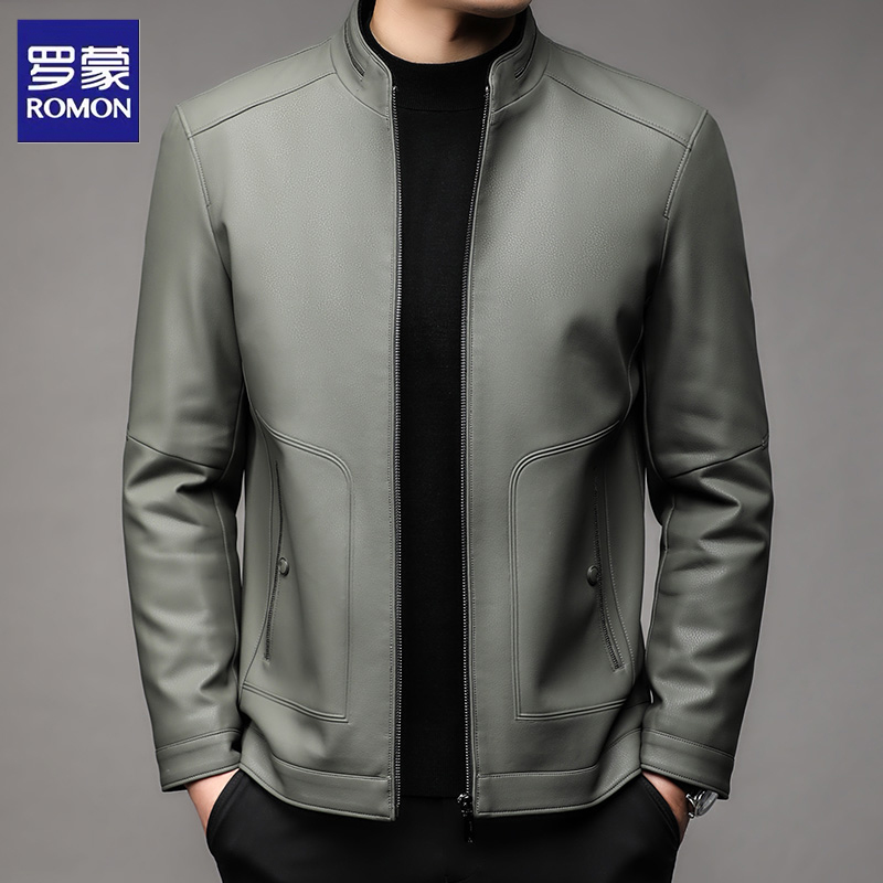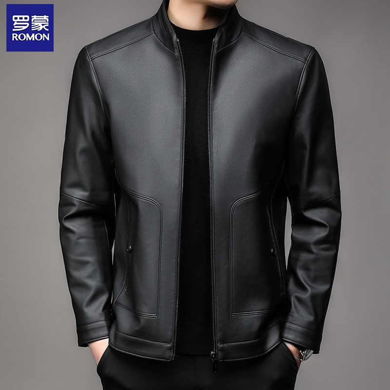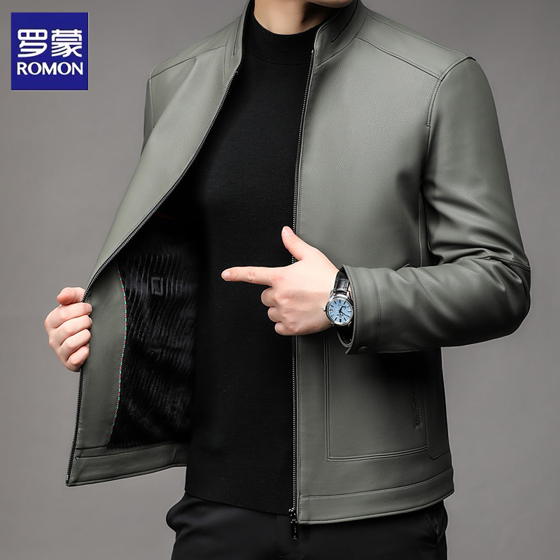 罗蒙立领皮衣夹克男士秋冬季商务休闲免烫防风保暖皮夹克外套
