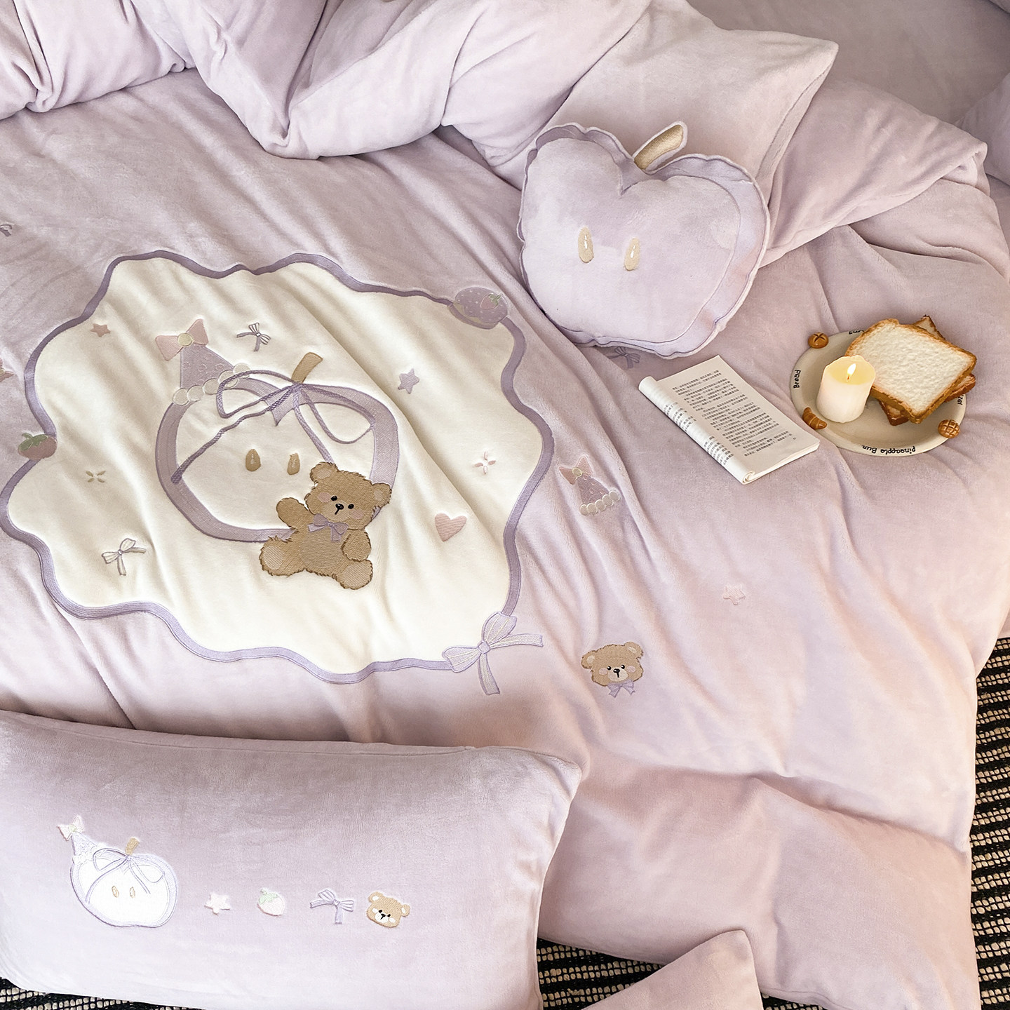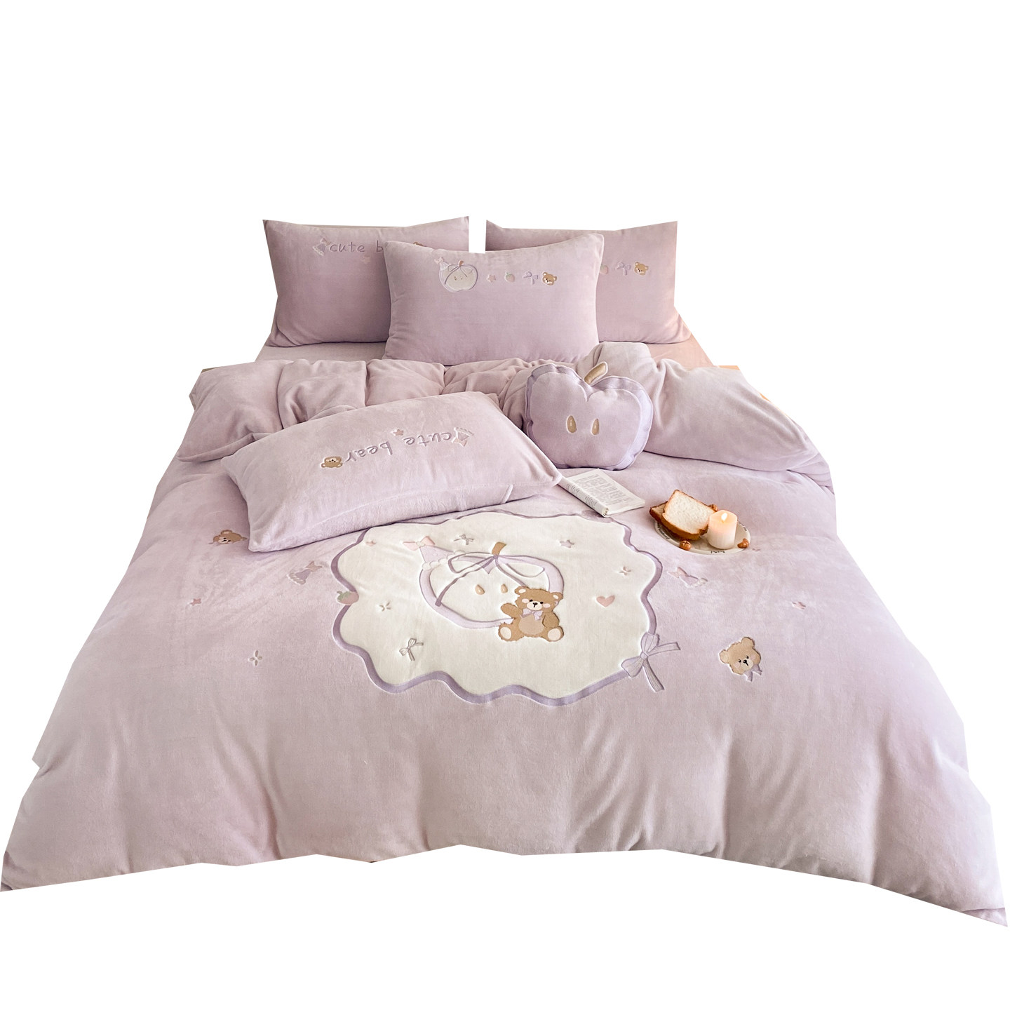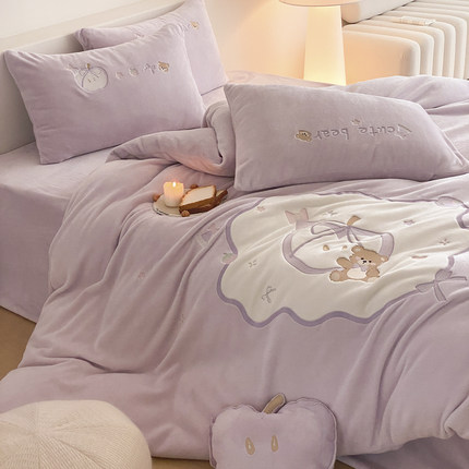 少女心紫色可爱小熊牛奶绒四件套