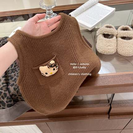 女童韩系立体卡通毛衣无袖叠穿背心2025秋装女宝宝针织马甲外穿