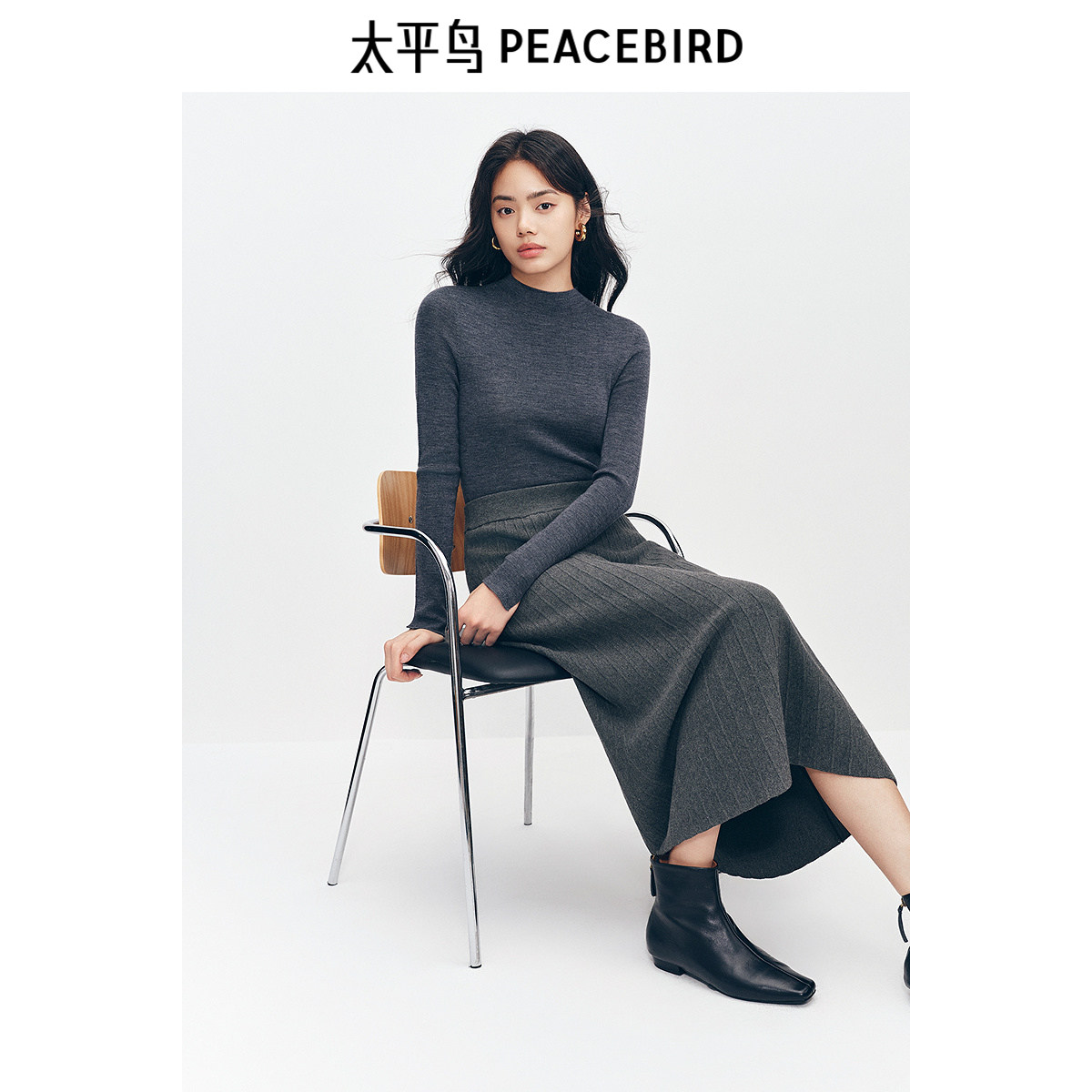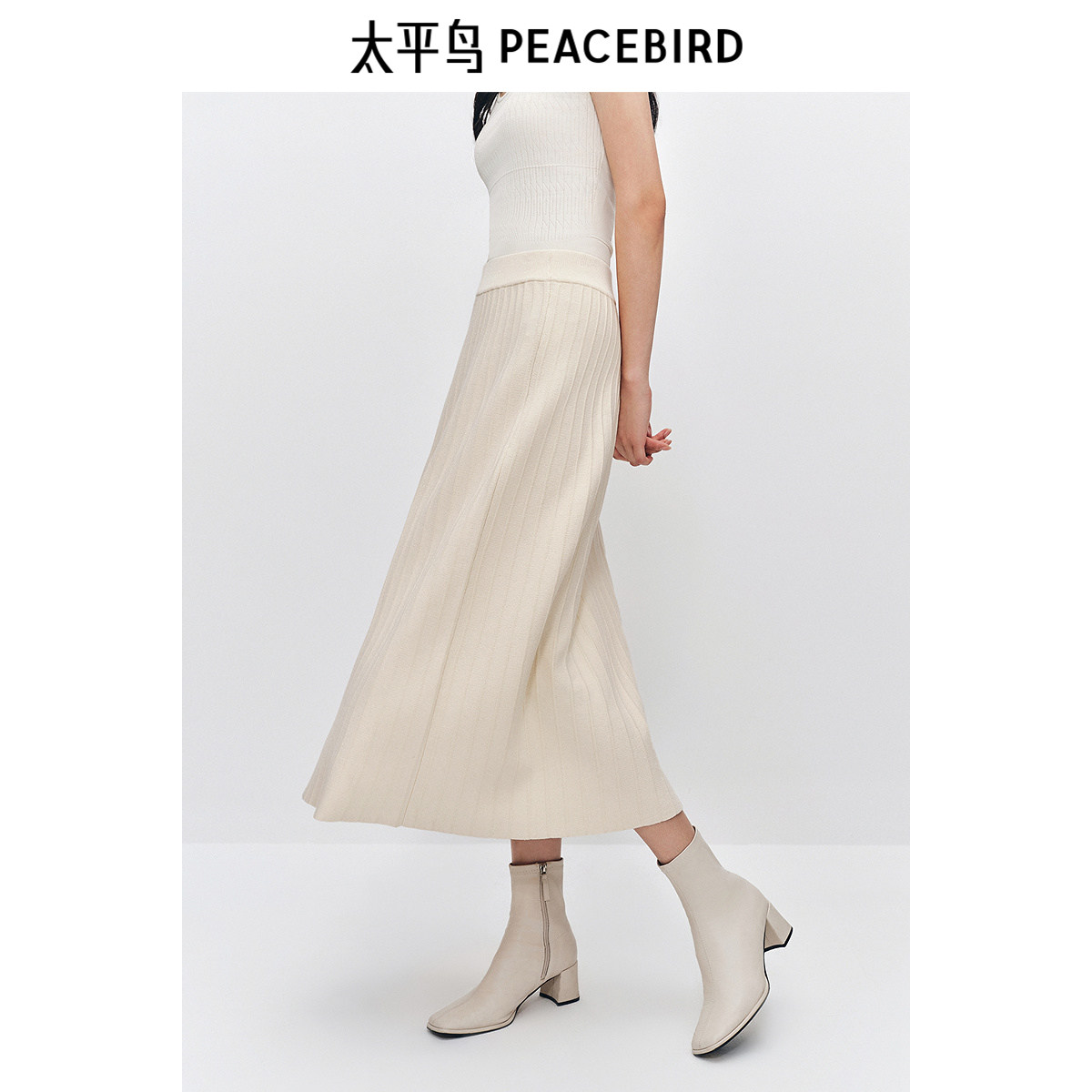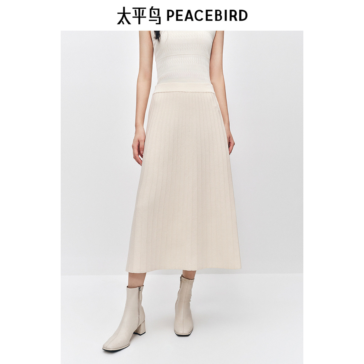 太平鸟 女士包芯纱贴肤直筒中长款半身裙25冬季新款韩版气质裙子