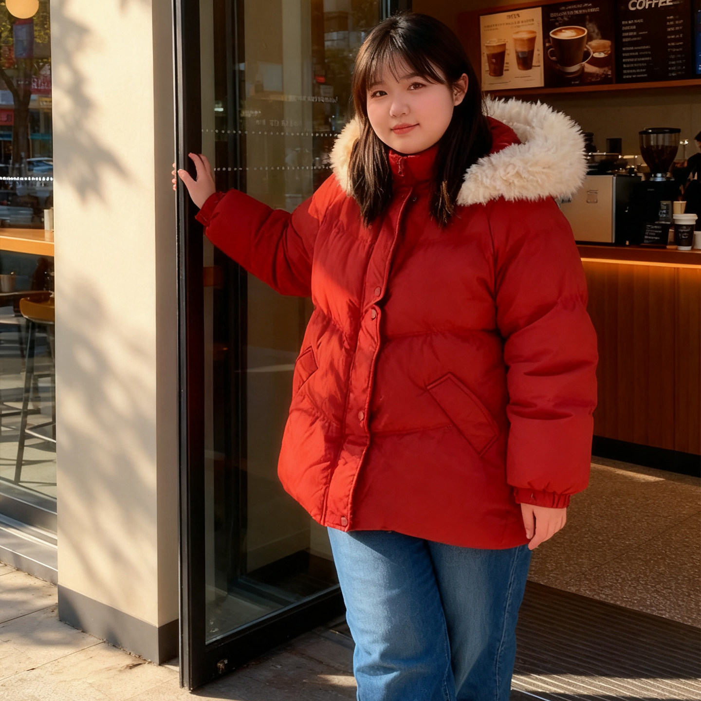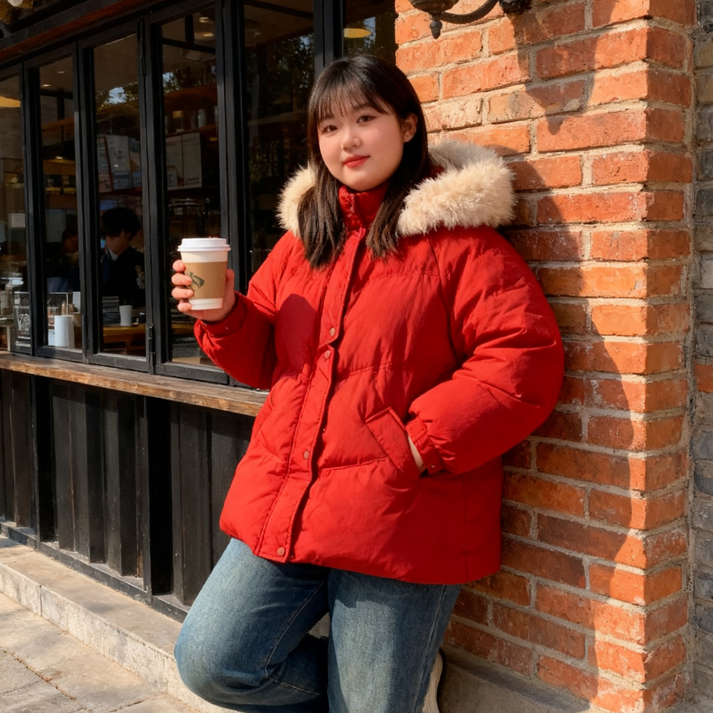 大码胖mm本命年红色连帽羽绒棉服
