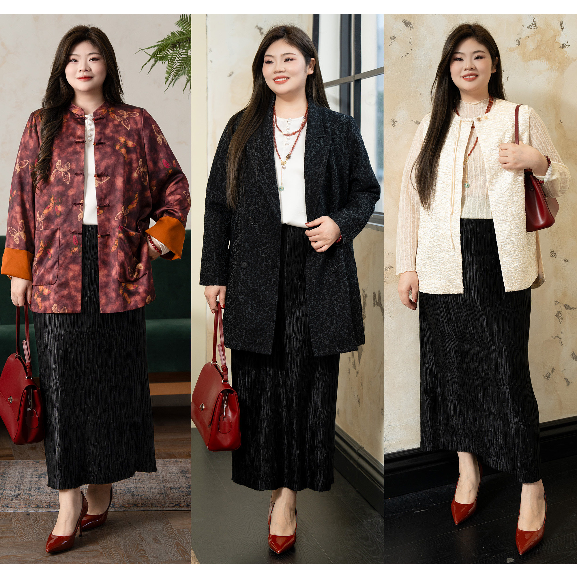 【墨韵涟漪】美丽客栈2025秋季流动哲学压褶半身裙原创高端大码女