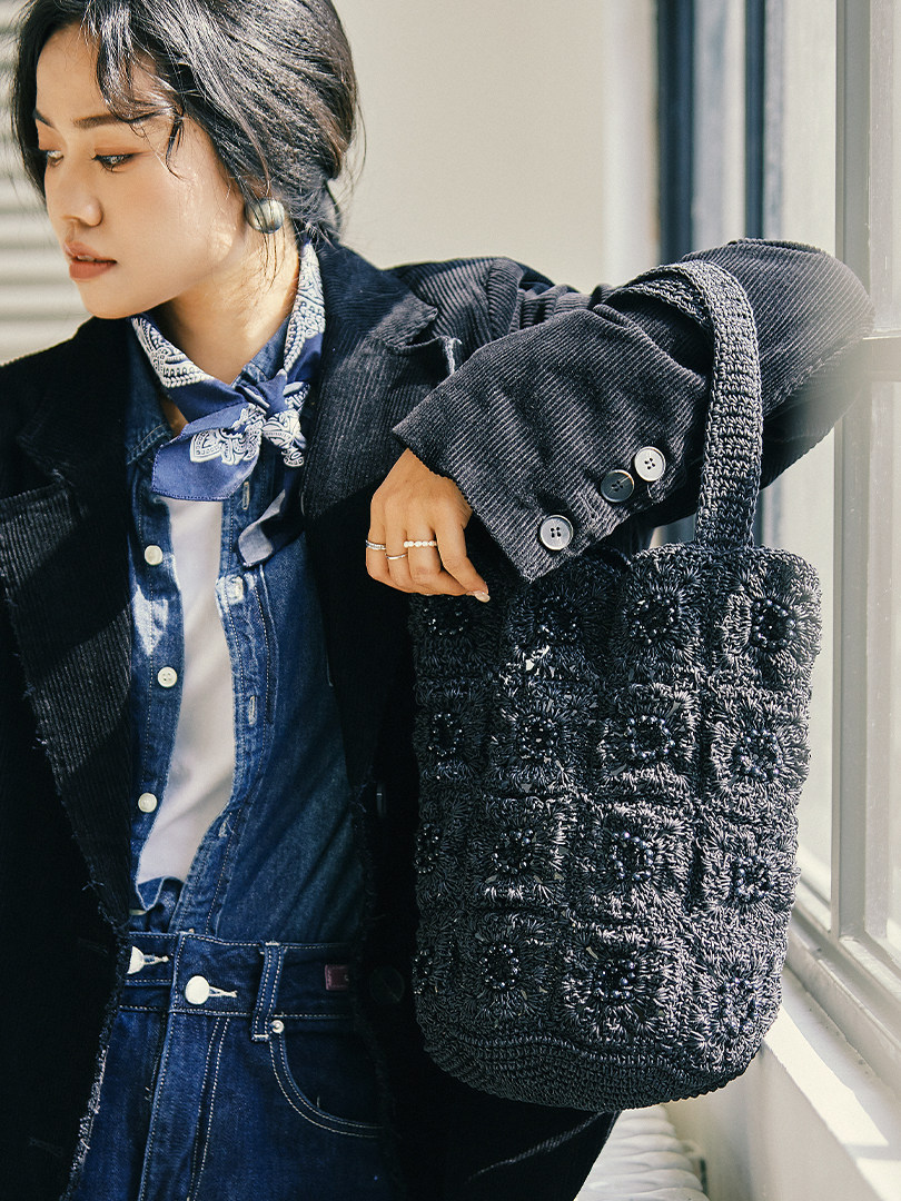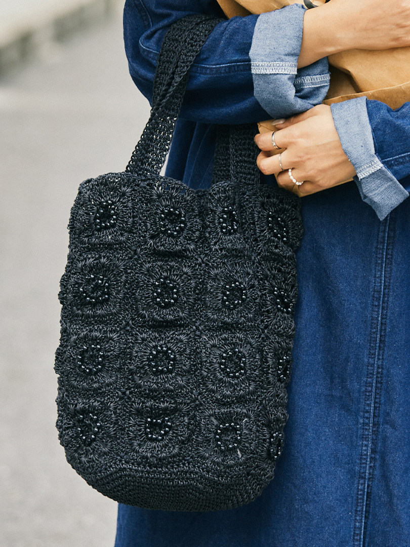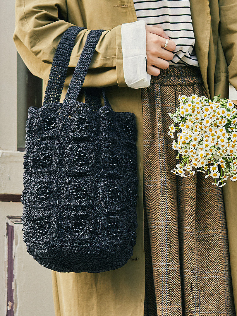 2026藤也家夏季新款休闲小众定制手工串珠蜡线棉麻编织水桶手提包