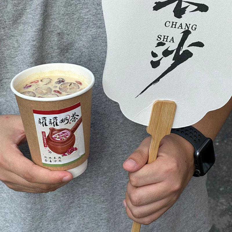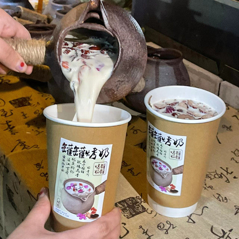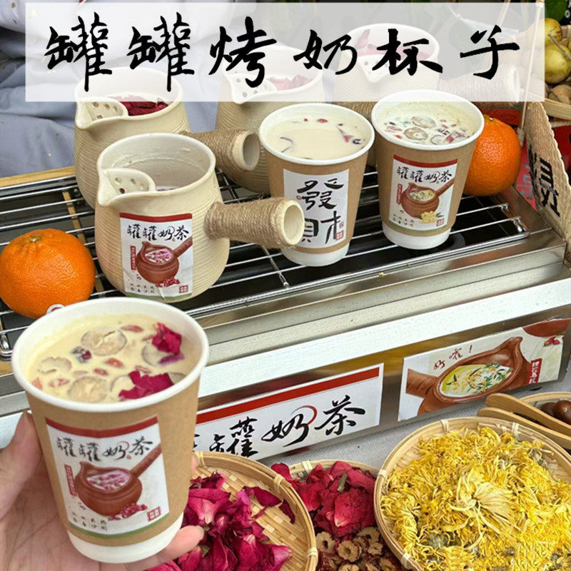 网红一次性罐罐烤奶纸杯双层牛皮色咖啡中空防烫热饮烤奶茶纸杯子