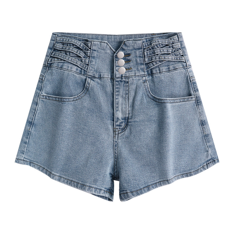 大码胖妹妹高腰收腹牛仔短裤女夏季新款A字百搭提臀宽松阔腿热裤