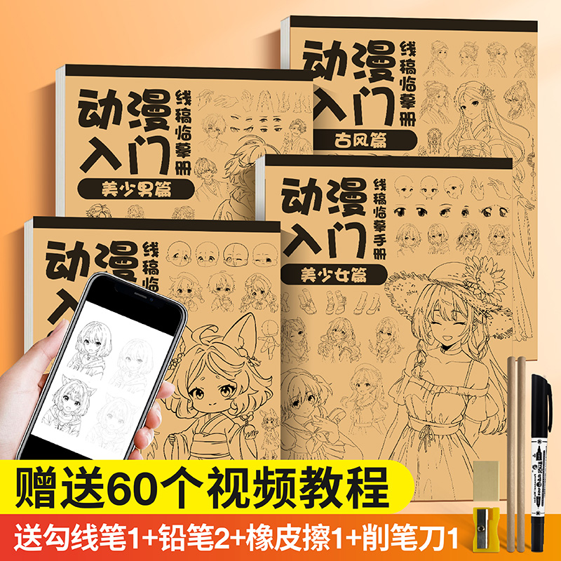 漫画入门手绘练习册描摹本 动漫人物美少女Q版古风线稿专用画画自