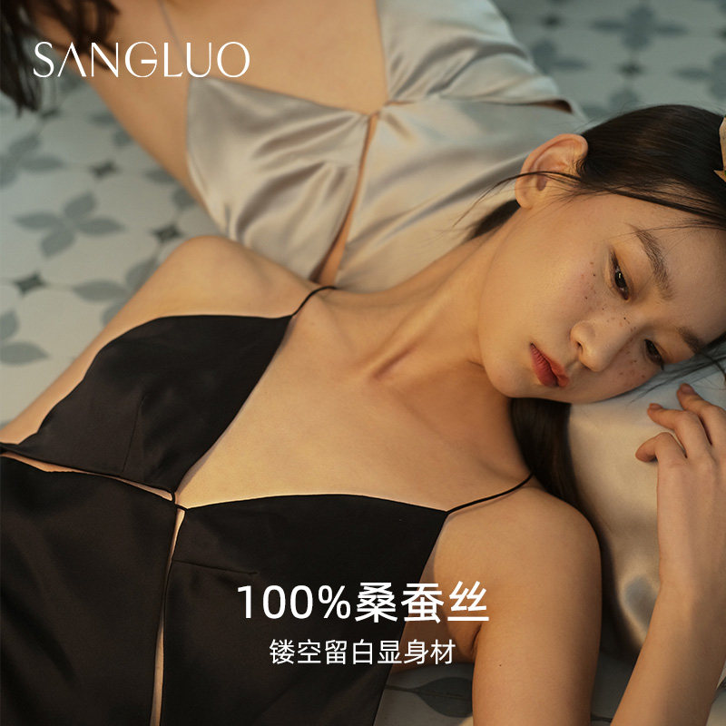 约会派对』桑罗真丝睡裙100%桑蚕丝吊带裙镂空性感礼服裙生日送礼