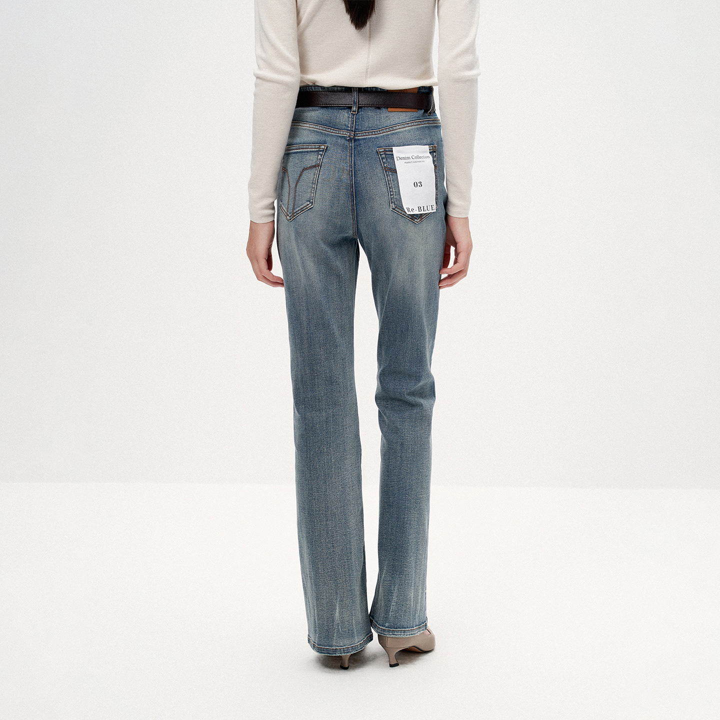 Re-BLUE复古摩登气质微喇牛仔裤
