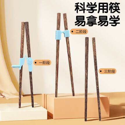 儿童训练筷实木筷子木质初学习筷辅助器夹指环卡扣婴儿宝宝3-6岁