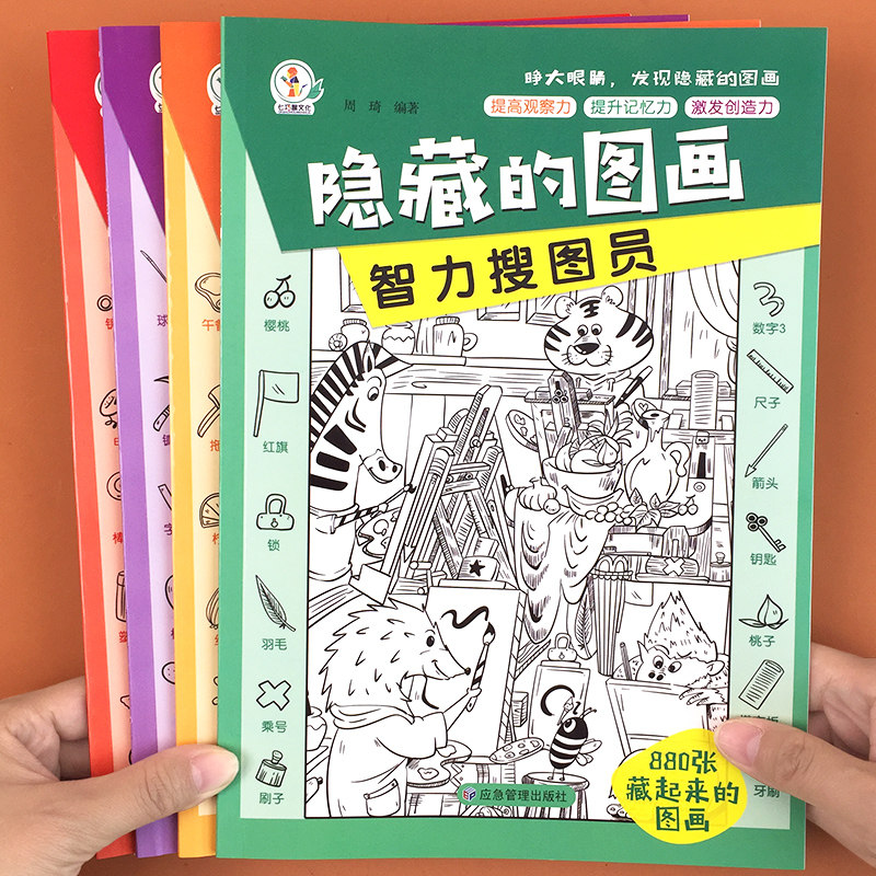 隐藏的图画加厚大本高难度极限视觉挑战小学生3-6岁以上8一12岁益智游戏儿童观察力训练 寻找图画捉迷藏图案涂色画画书迷你小本