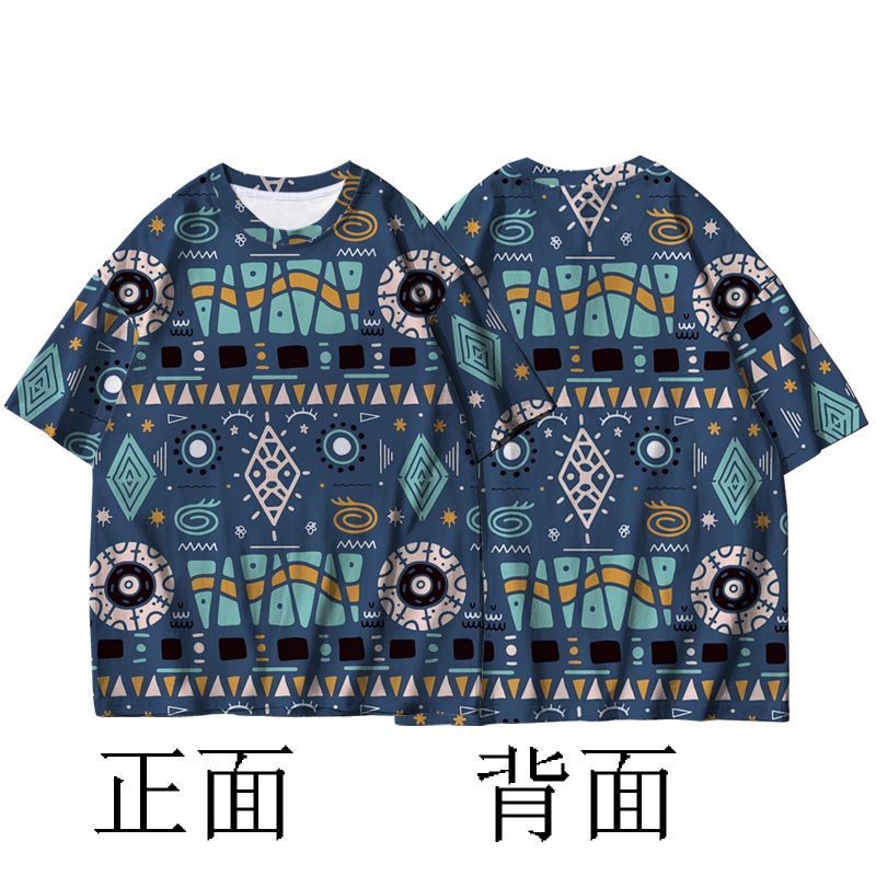 2025夏季新款潮牌复古短袖t恤男女同款情侣装宽松百搭半袖全彩T恤