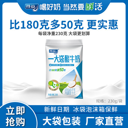 得益一大袋风味酸牛奶袋装益生菌酸奶整箱230g*18袋得益低温酸奶
