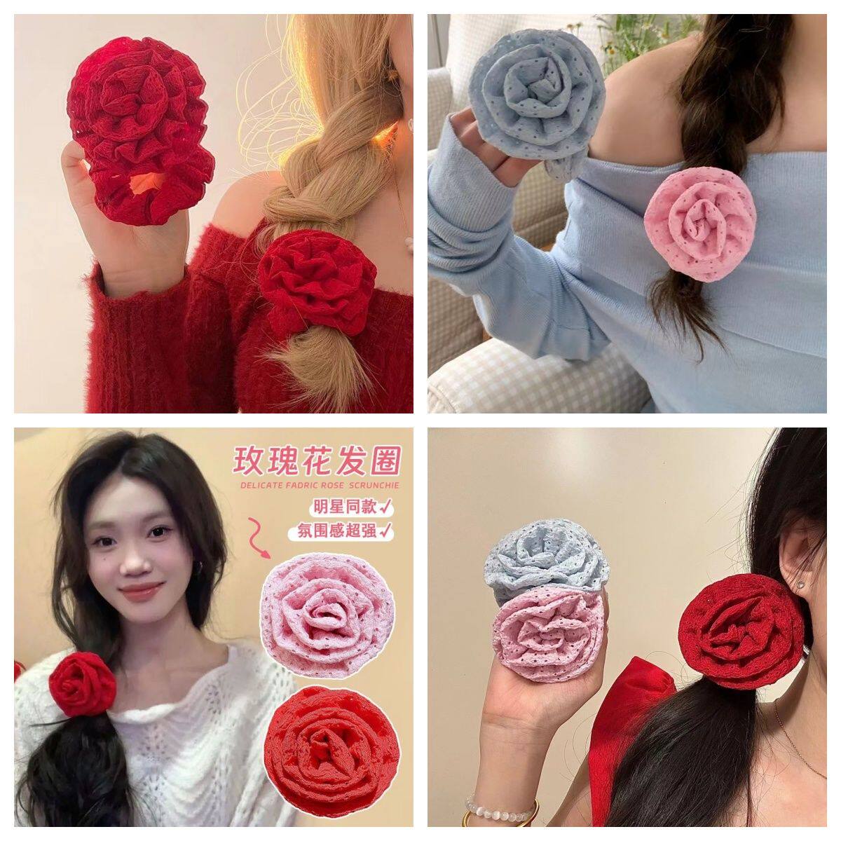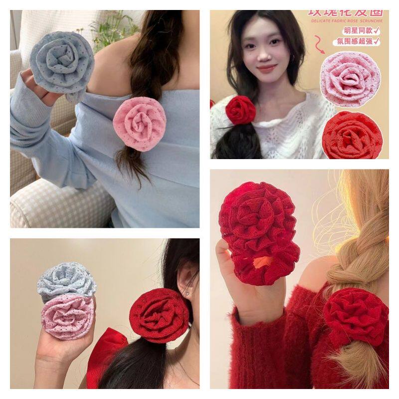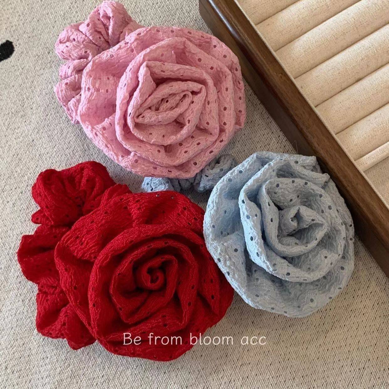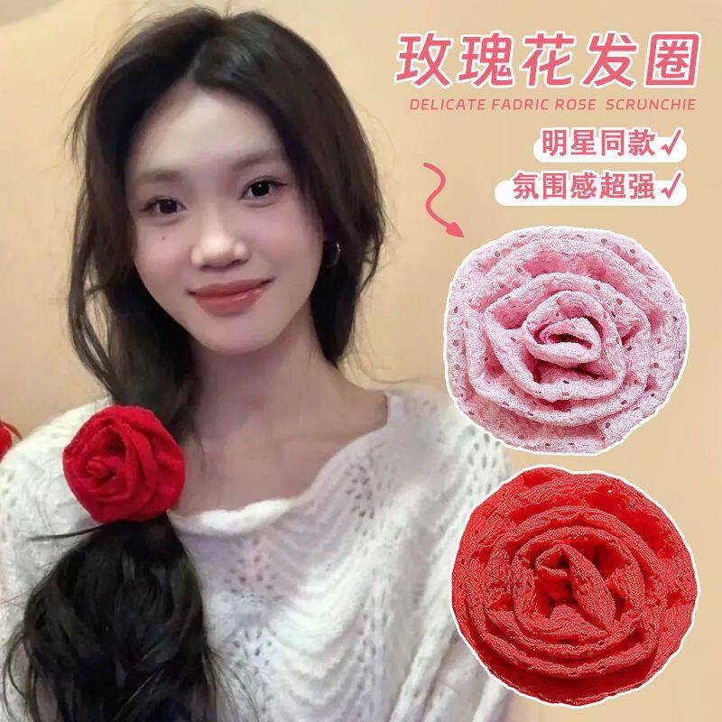 明星同款夏日氛围感玫瑰花大肠圈法式复古网红冷淡风皮筋头花头饰