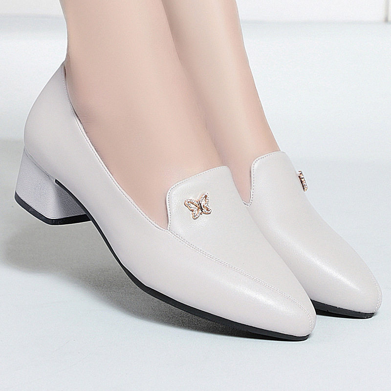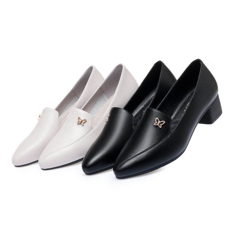 妈妈鞋软底时尚单鞋舒适中年女鞋中跟粗跟大码中老年深口休闲皮鞋