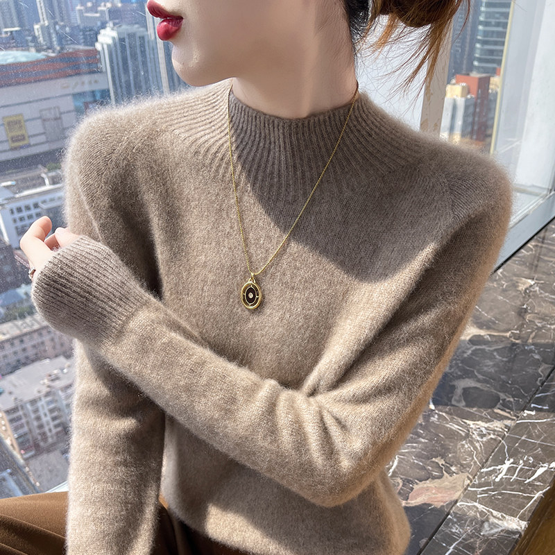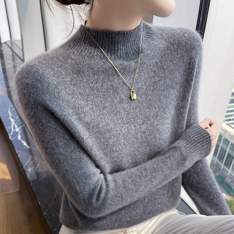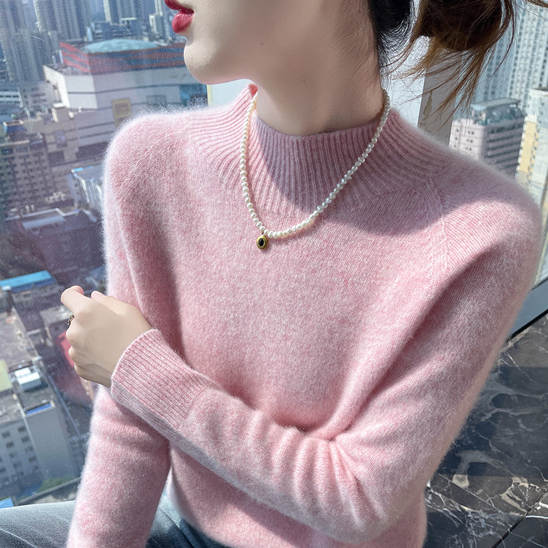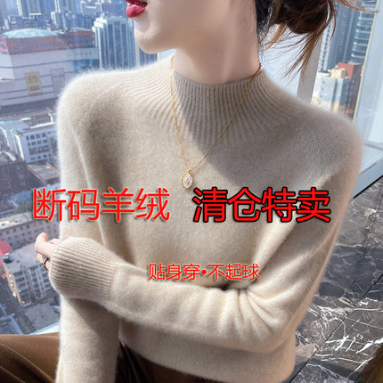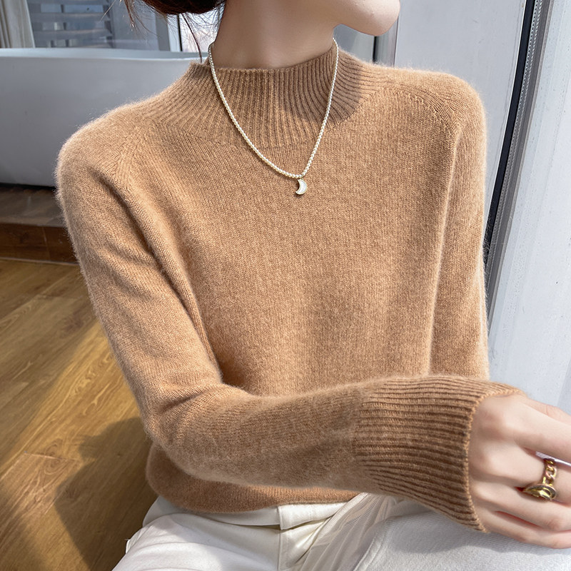 鄂尔多斯市无缝一线半高领羊绒衫女套头加厚毛衣通勤风针织打底衫