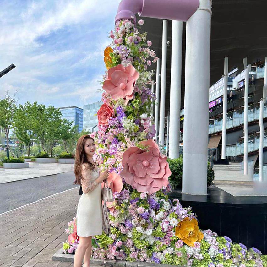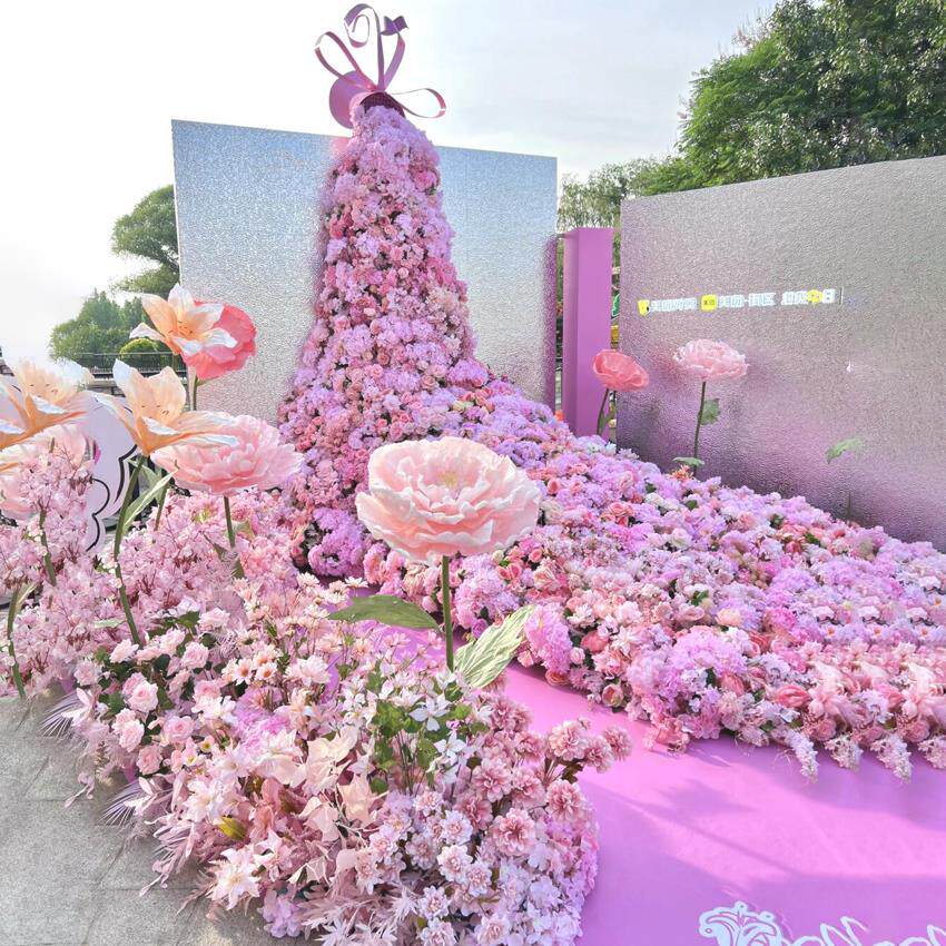 玫瑰花瀑布花墙场景背景墙装饰彷真花网红打卡假花商场玫瑰花墙