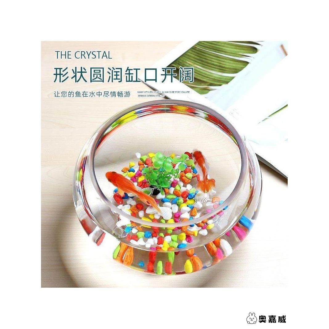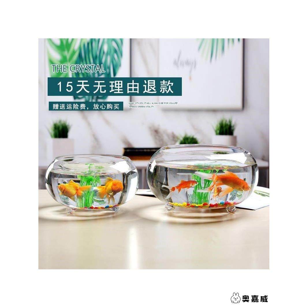 创意加厚带脚透明玻璃圆形金鱼缸客厅小型鱼缸家用桌面水培乌龟缸
