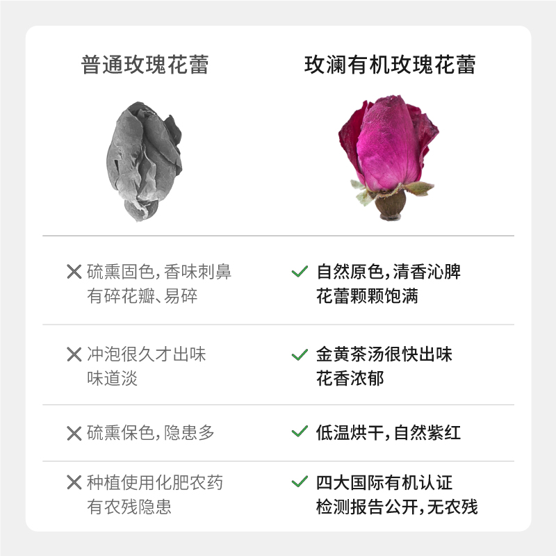 有机玫瑰花蕾茶干玫瑰花玫澜正品泡水无硫熏养生茶叶伴手礼罐装