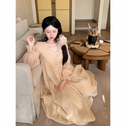 城南边儿6.7【盛夏物语系列】苎麻棉灯笼袖罩衫系扣开衫连衣裙