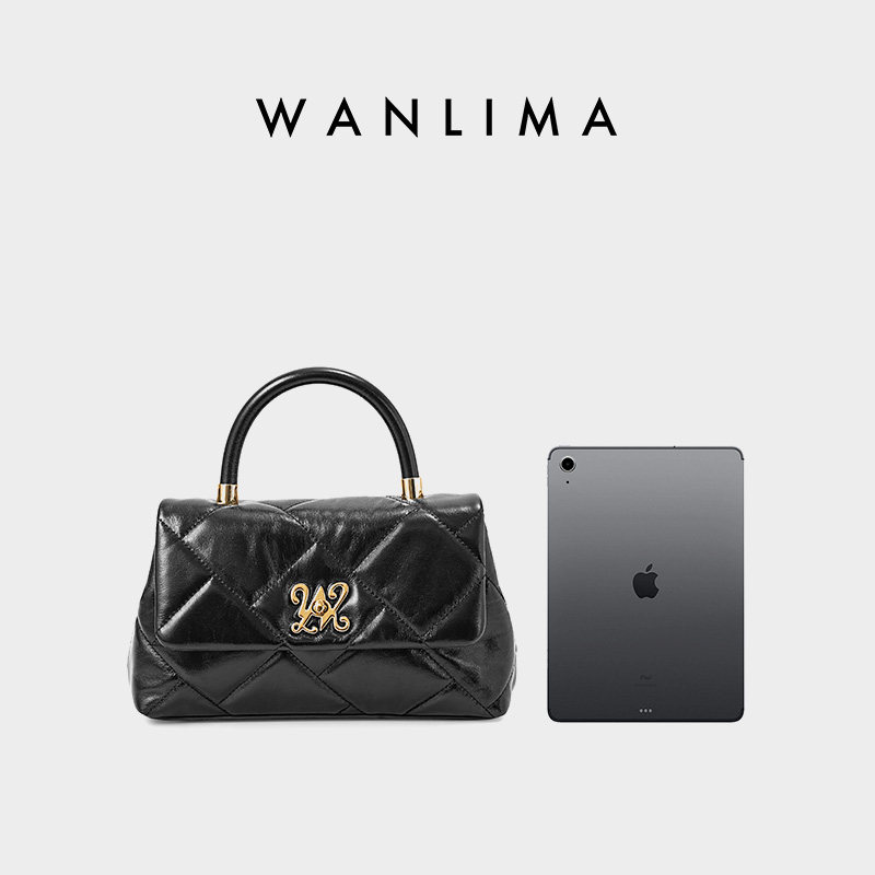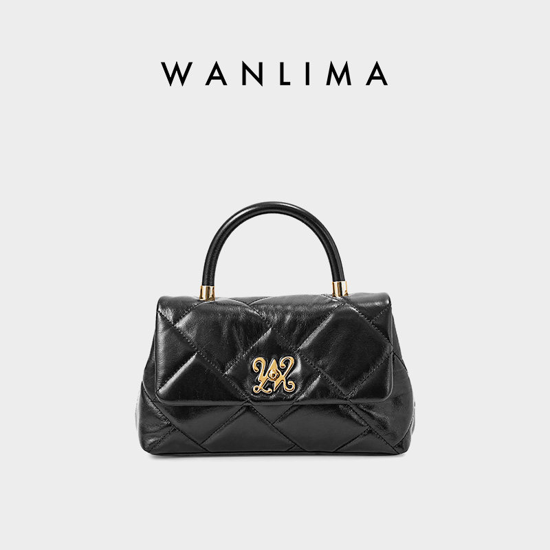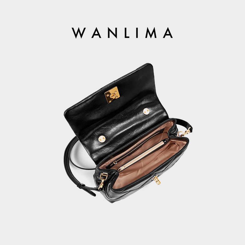 万里马女士气质通勤风单肩斜挎手提包中号单肩包菱格纹牛皮女包