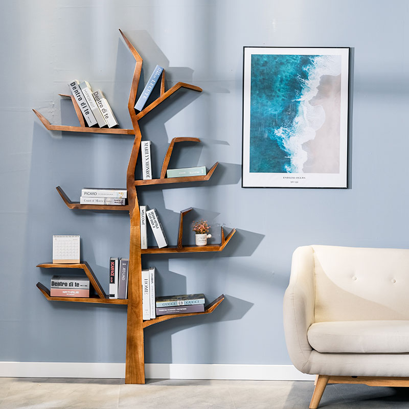创意树书架实木墙上壁挂置物架背景墙装饰架儿童收纳
