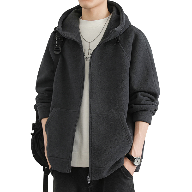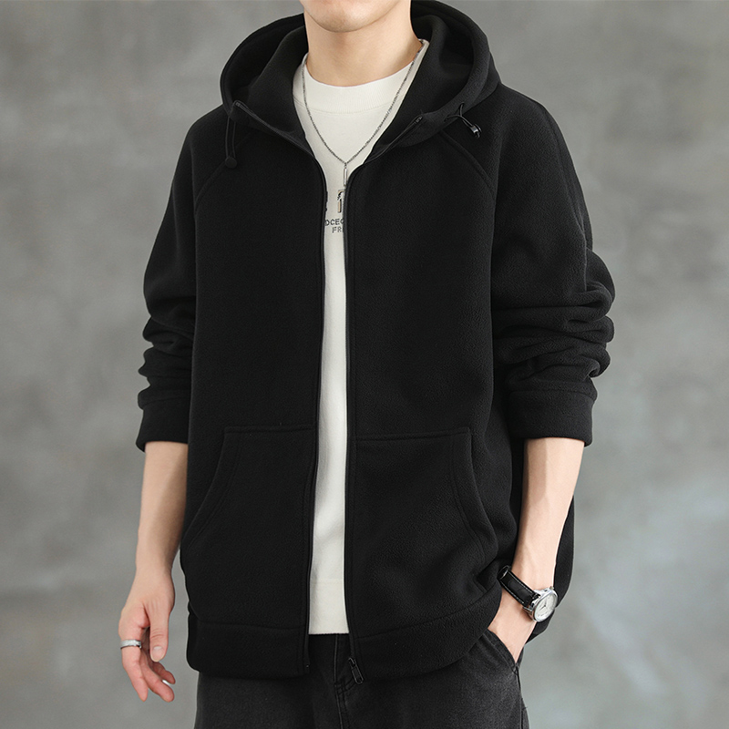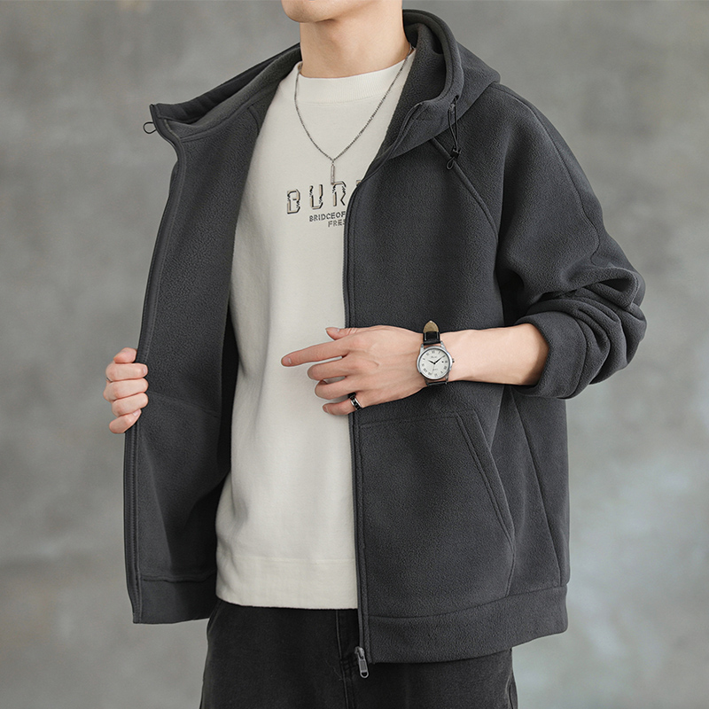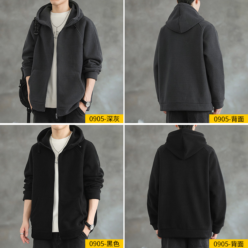 2025秋冬运动外套加绒加厚宽松上衣跑步健身保暖开衫连帽卫衣男
