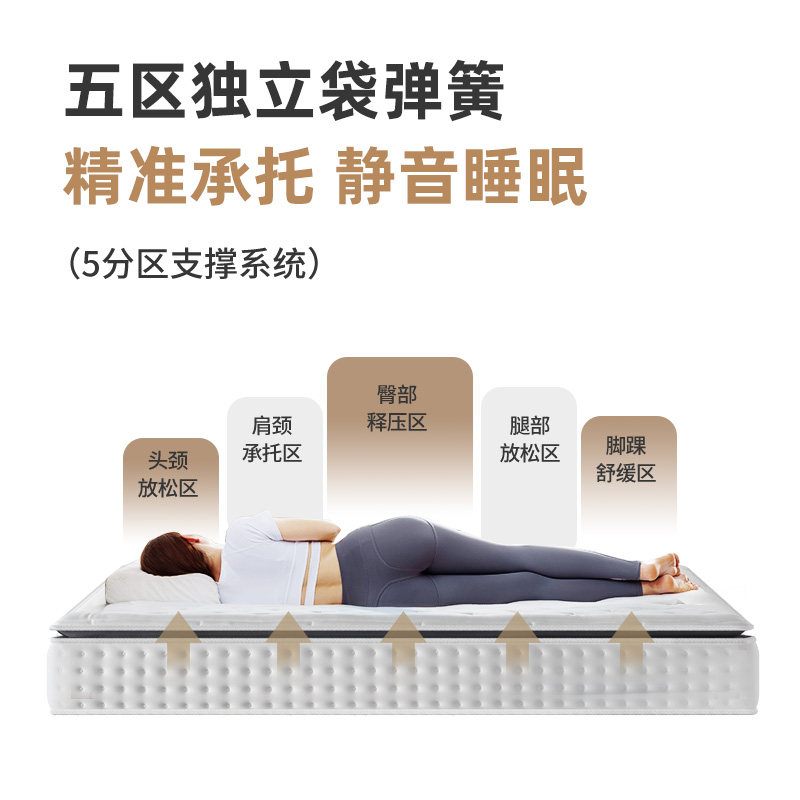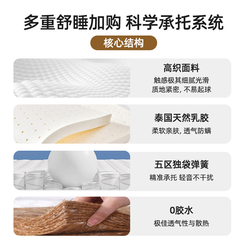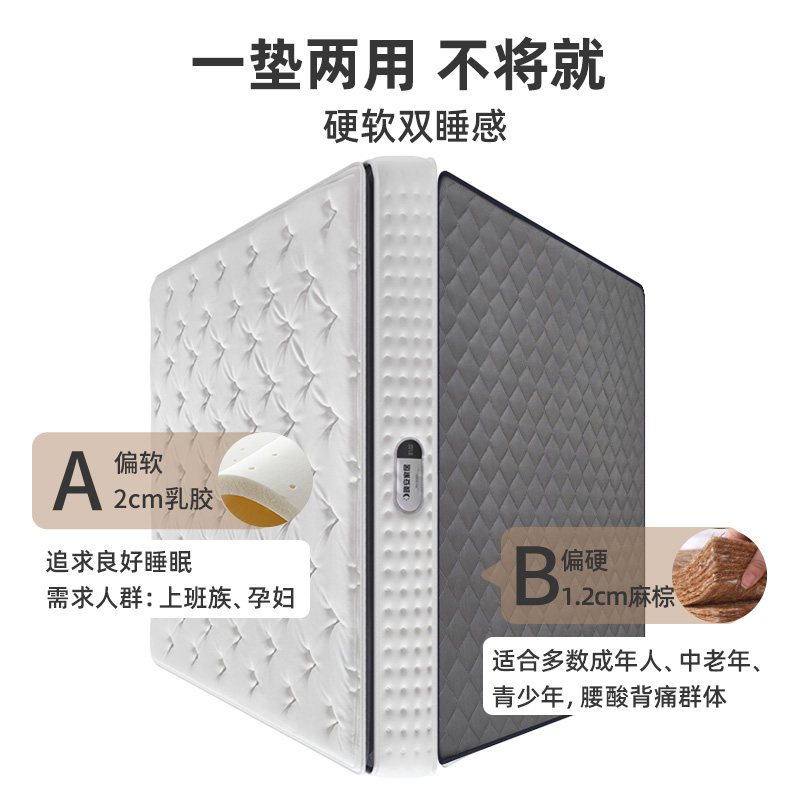 晚安乳胶床垫正面乳胶反面麻棕软硬两用5区独袋弹簧1.8m席梦思