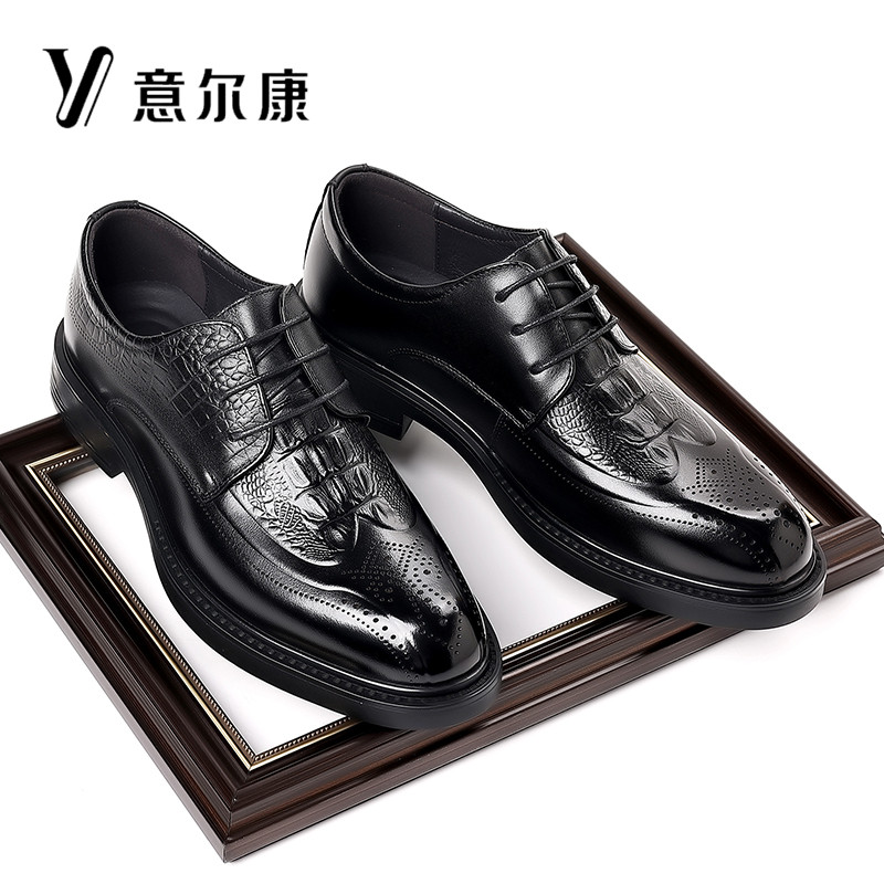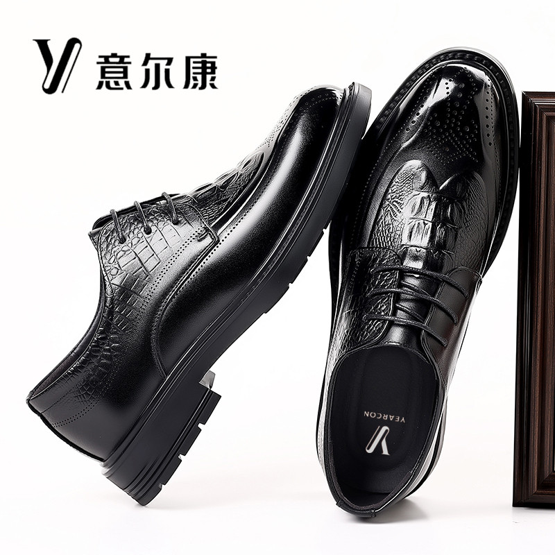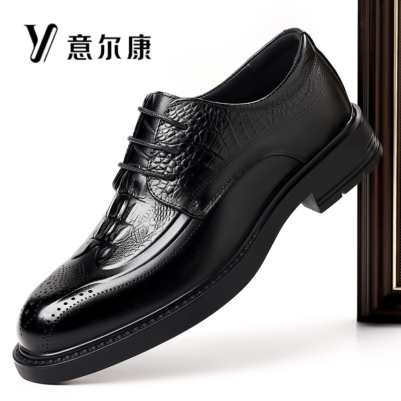 意尔康男鞋真皮商务正装皮鞋男士秋冬新款透气牛皮休闲布洛克潮鞋